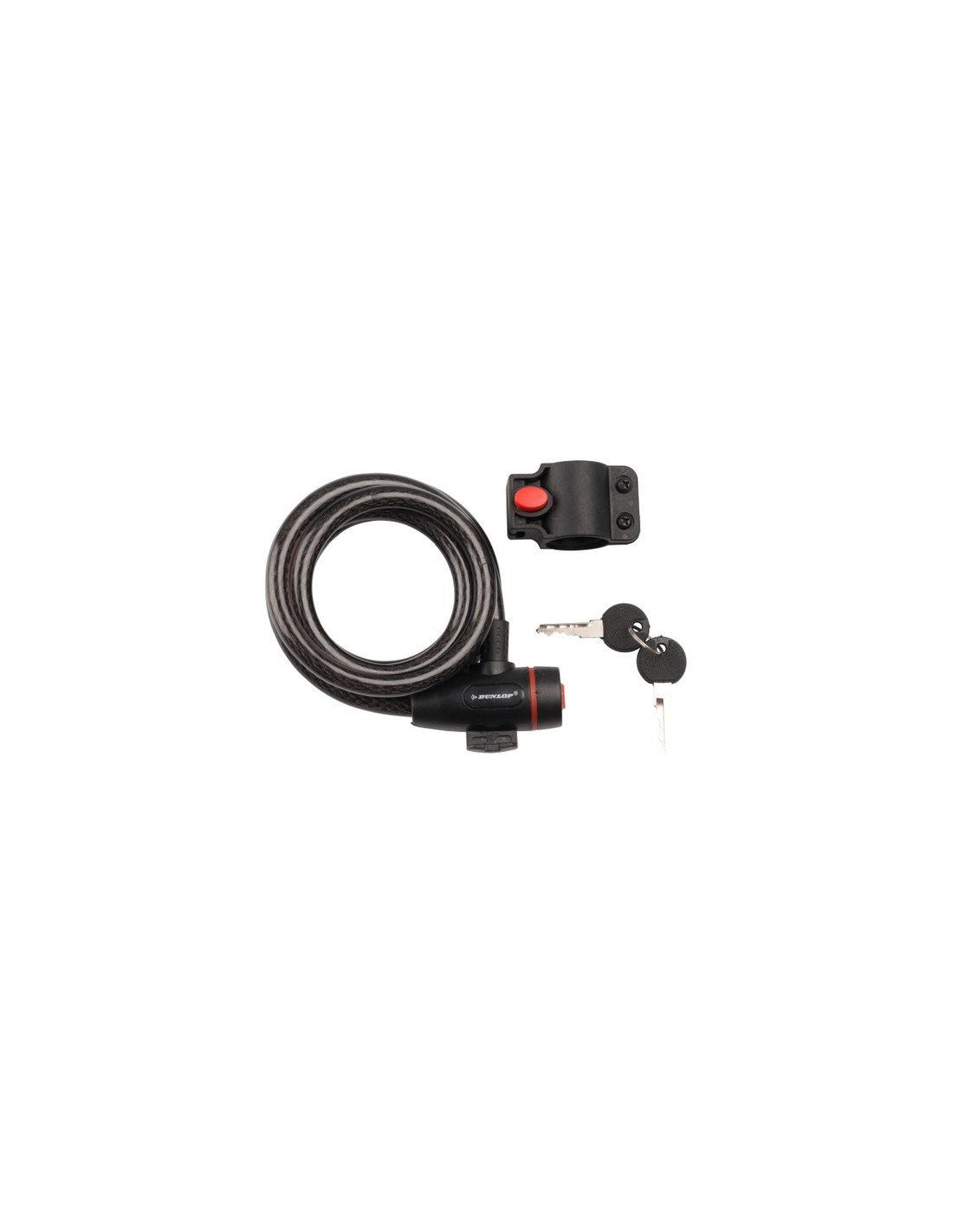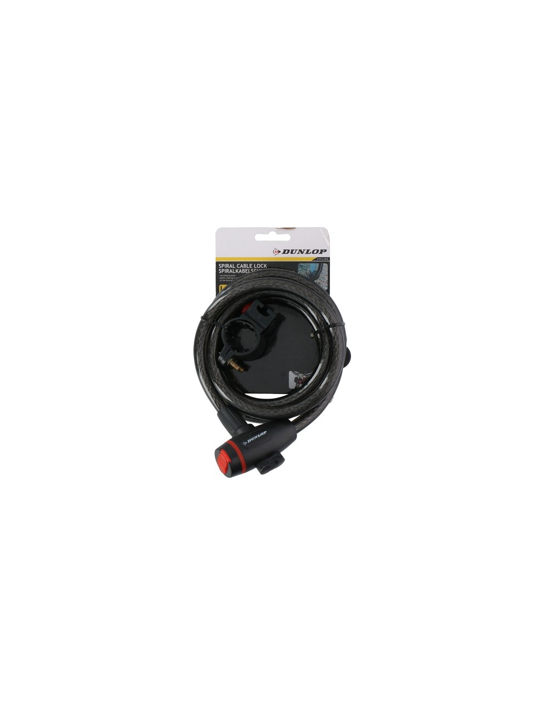 Solidne zapięcie spiralne marki DUNLOP otoczone zostało delikatnym tworzywem sztucznym chroniącym ramę przed zarysowaniami. Wyposażone w automatyczny cylinder i płaski klucz.