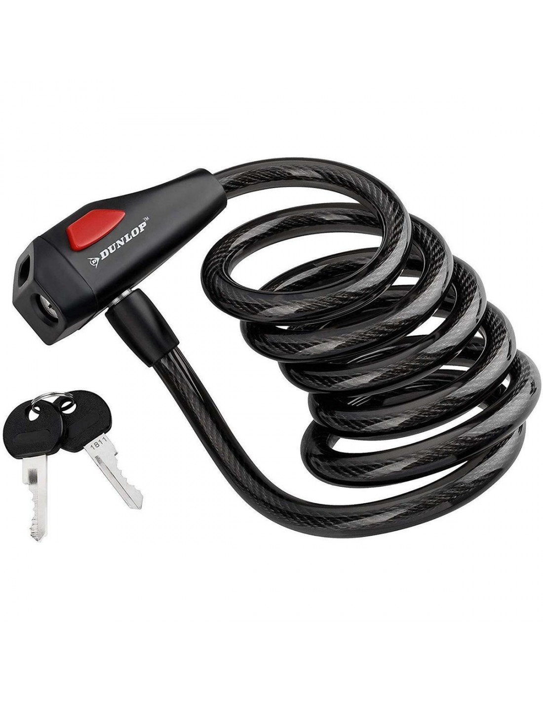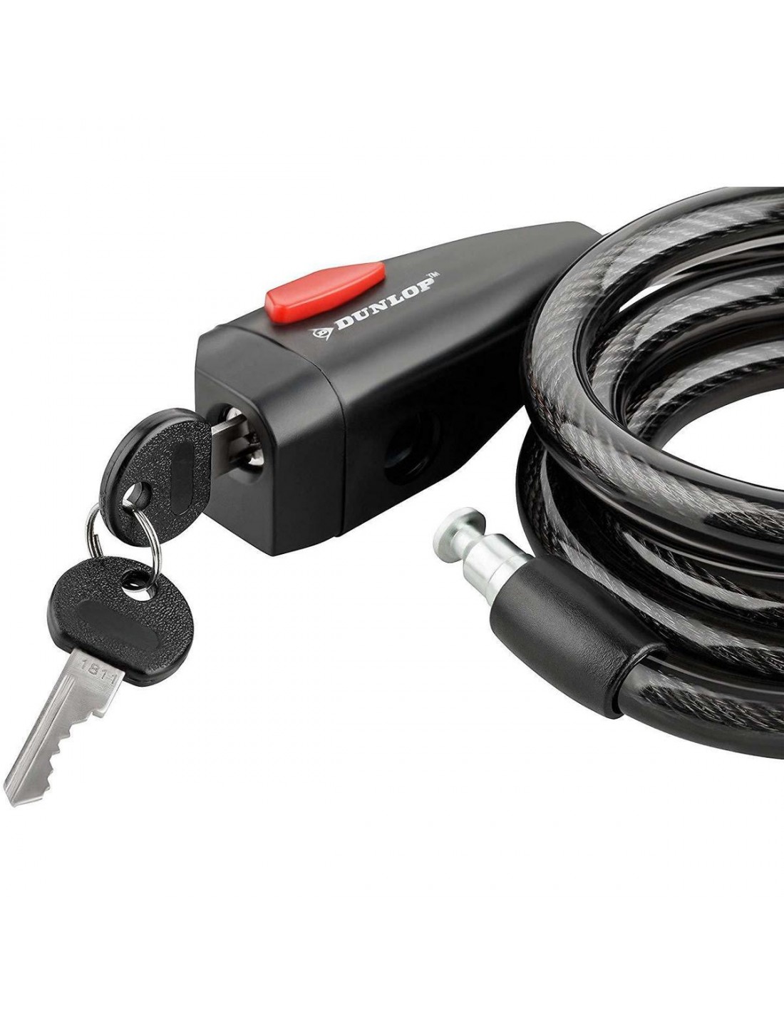 Solidne zapięcie spiralne marki DUNLOP otoczone zostało delikatnym tworzywem sztucznym chroniącym ramę przed zarysowaniami. Wyposażone w automatyczny cylinder i płaski klucz.