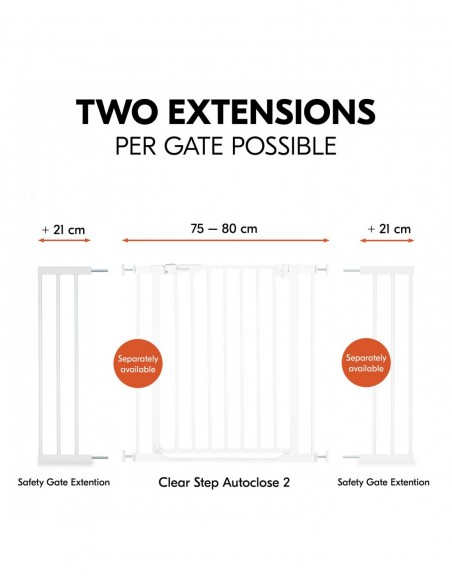 Rozszerzenie 1 x 21 cm to dla Ciebie za mało? Bramkę hauck można połączyć z maksymalnie 2 rozszerzeniami. W ten sposób