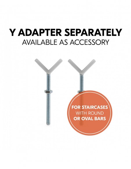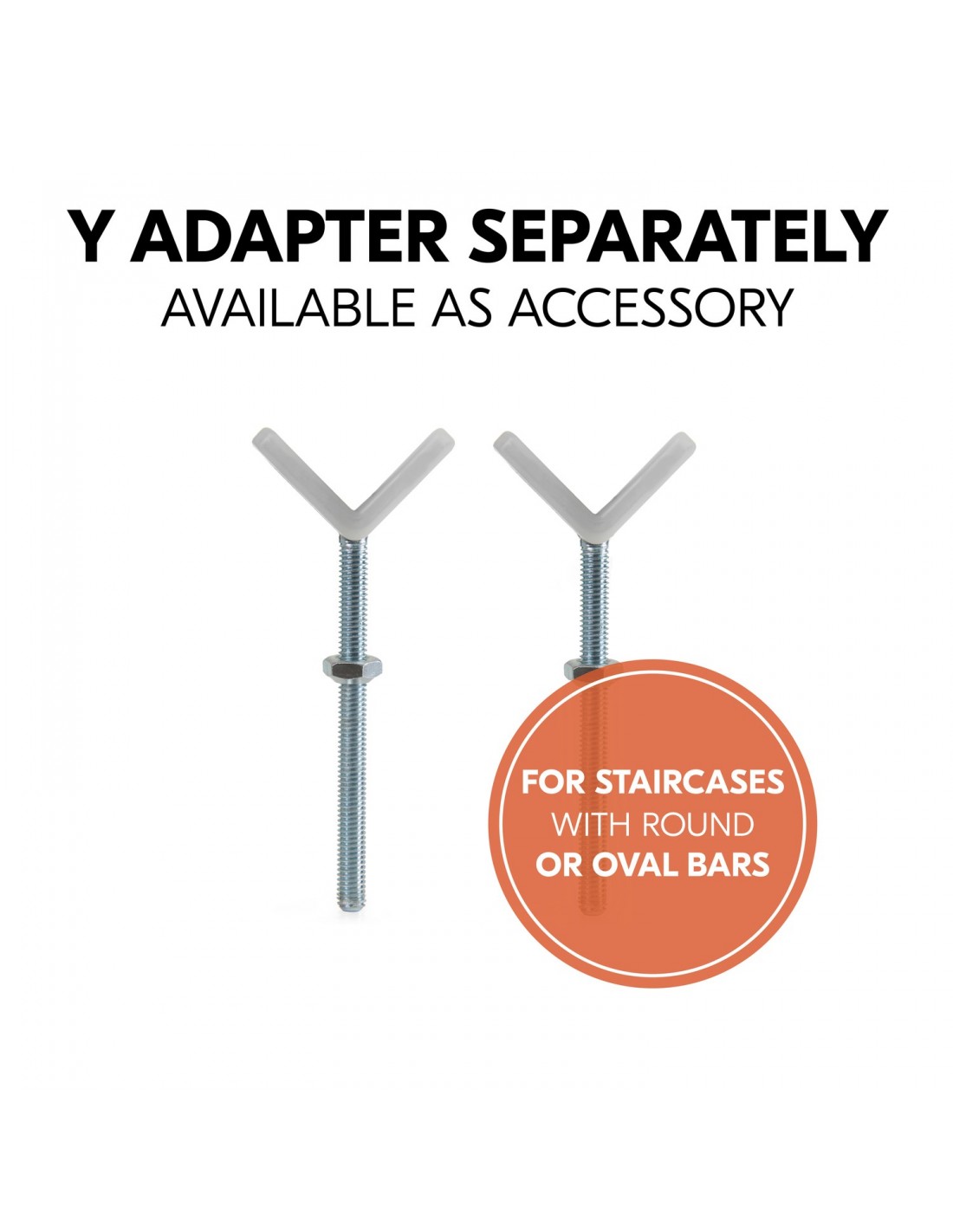 Dzięki dostępnym oddzielnie śrubom Y firmy hauck można również przymocować przedłużenie wraz z bramką zabezpieczającą do balustrad z okrągłymi i owalnymi szynamI szybko i łatwo bez wiercenia.