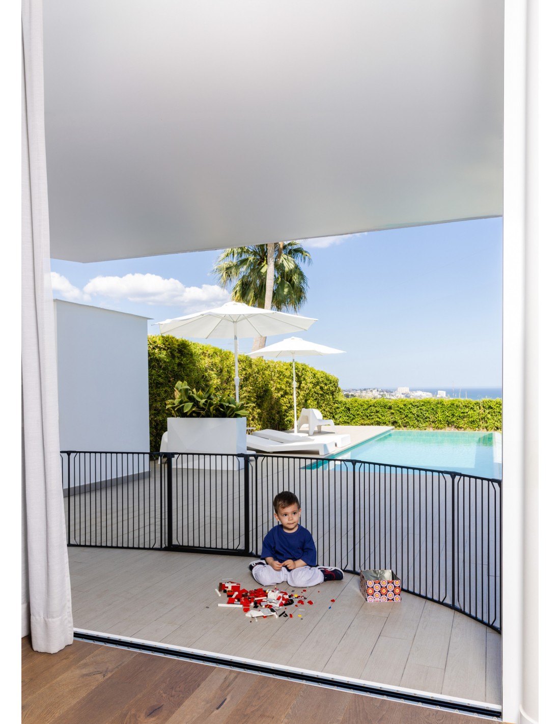 Wbudowana furtka otwiera się w obu kierunkach i umożliwia łatwe wejście i wyjście bez konieczności demontażu elementów. Wysokość 70,5 cm zapewnia skuteczne zabezpieczenie, a jednocześnie nie utrudnia dostępu dorosłym.