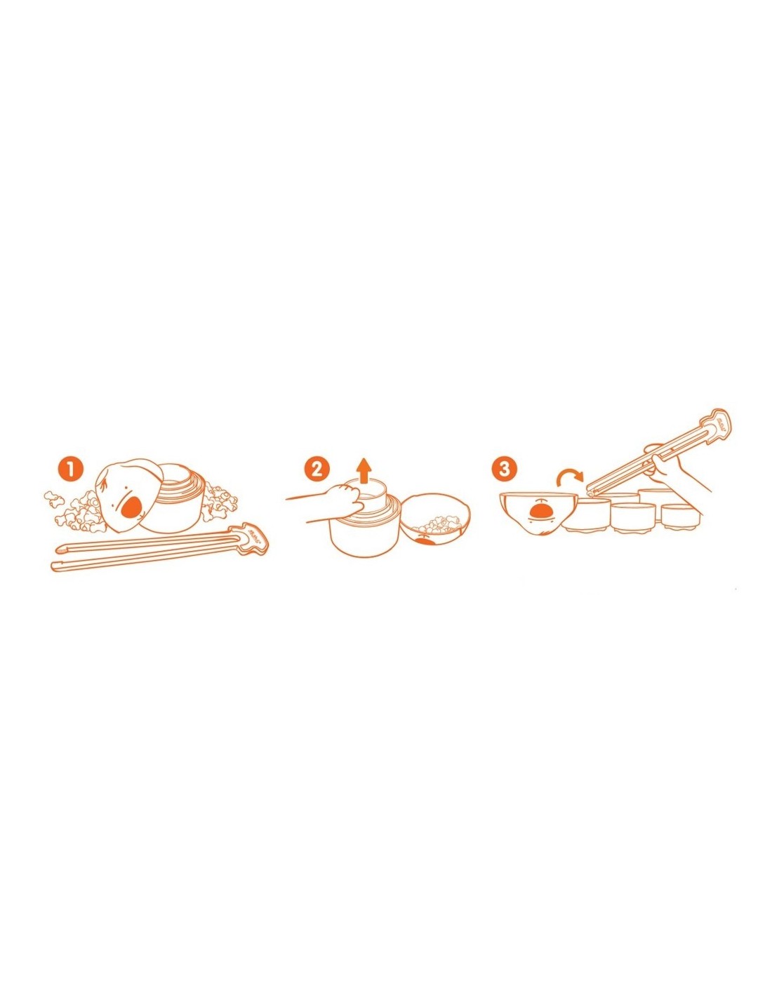Zachęć dziecko do korzystania z pałeczek by chwicić kosteczki i posegregować je do kolorowych miseczek, tak jak można zrobić to za pomocą dwóch paluszków.
