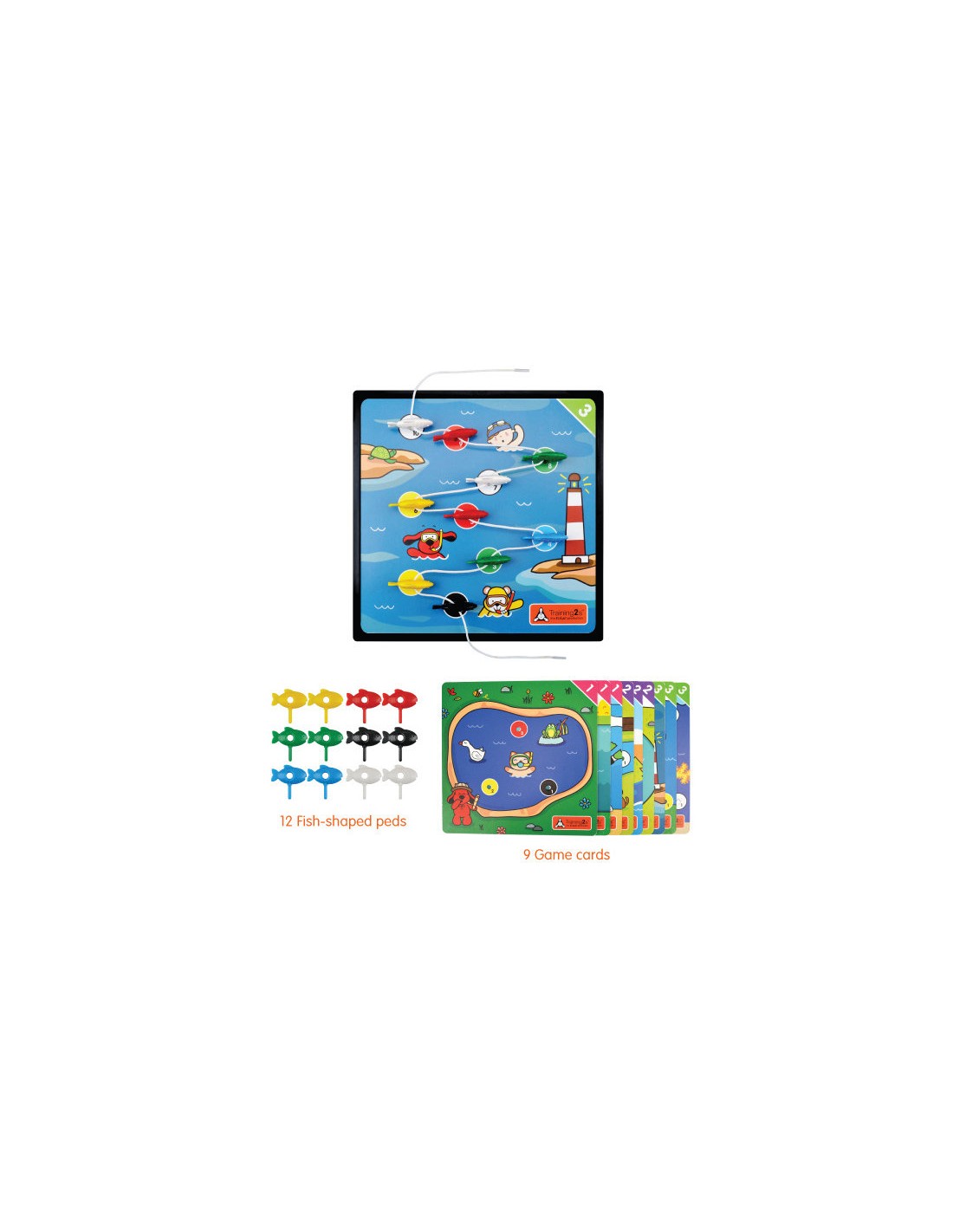 Ćwiczenie mięśni palców jest niezbędne do rozwijania umiejętności pisania. Labirynt rybki posiada planszę, 12 kolorowych rybek, 9 kart do gry o różnych poziomach zaawansowania i 2 sznurki. Najpierw, dziecko powinno umieścić kartę gry na planszy, następnie umieścić rybki w otwory o odpowiednich kolorach. Następnie dziecko powinno przewlec sznurki przez rybkę jedna po drugiej według podanej sekwencji. Dziecko może zacząć od najprostszych zadań i przejść do bardziej zaawansowanych. Gra przyczyni się do wzmocnienia zdolności motorycznych, koordynacji wzrokowo-ruchowej i rozpoznawania kolorów.