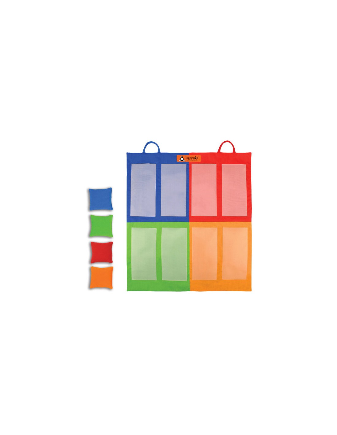Umiejętności motoryczne są niezbędne, aby pomóc dzieciom wzmocnić swoje mięśnie i wykonywać czynności takie jakie stanie, siedzenie, chodzenie, bieganie itd. Zabawka Rzuć do celu jest bardzo przydatnym narzędziem do szkolenia i zabawy by wzmocnić i rozwinąć motorykę dużą dziecka. Powieś matę na solidnym i stabilnym miejscu, takim jak ściana lub drzwi. Następnie wrzucaj woreczki z groszkiem do obszarów pasujących kolorystycznie. Ta gra poprawia koordynację i równowagę dziecka, rozwija motorykę dużą i doskonali postawę ciała. Zabawa może również pomóc uwolnić wewnętrzny niepokój i gniew dzieci, by mogły zachować stabilność emocjonalną.
