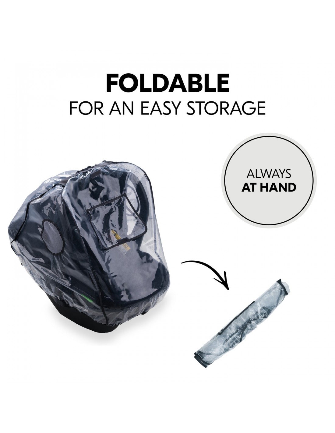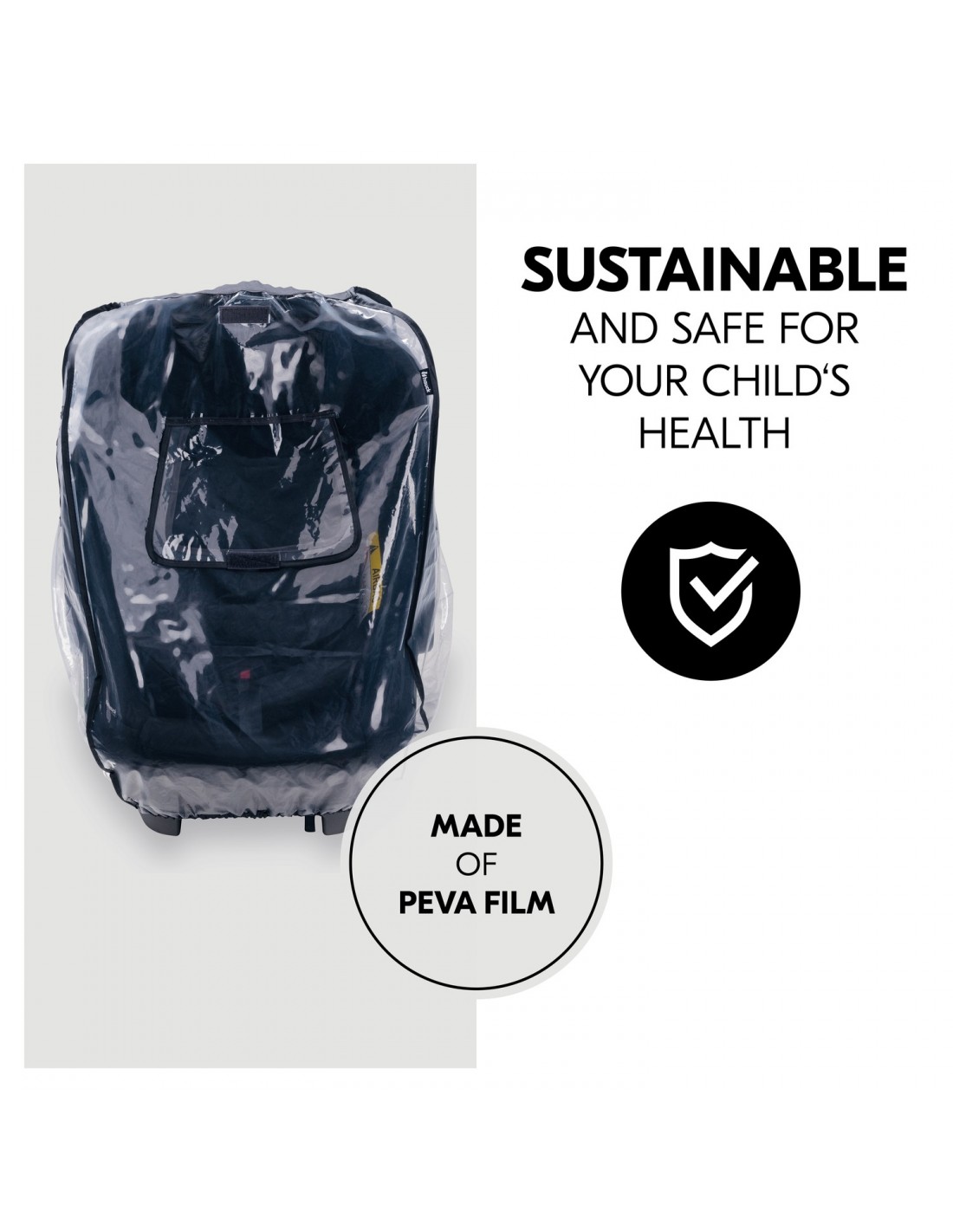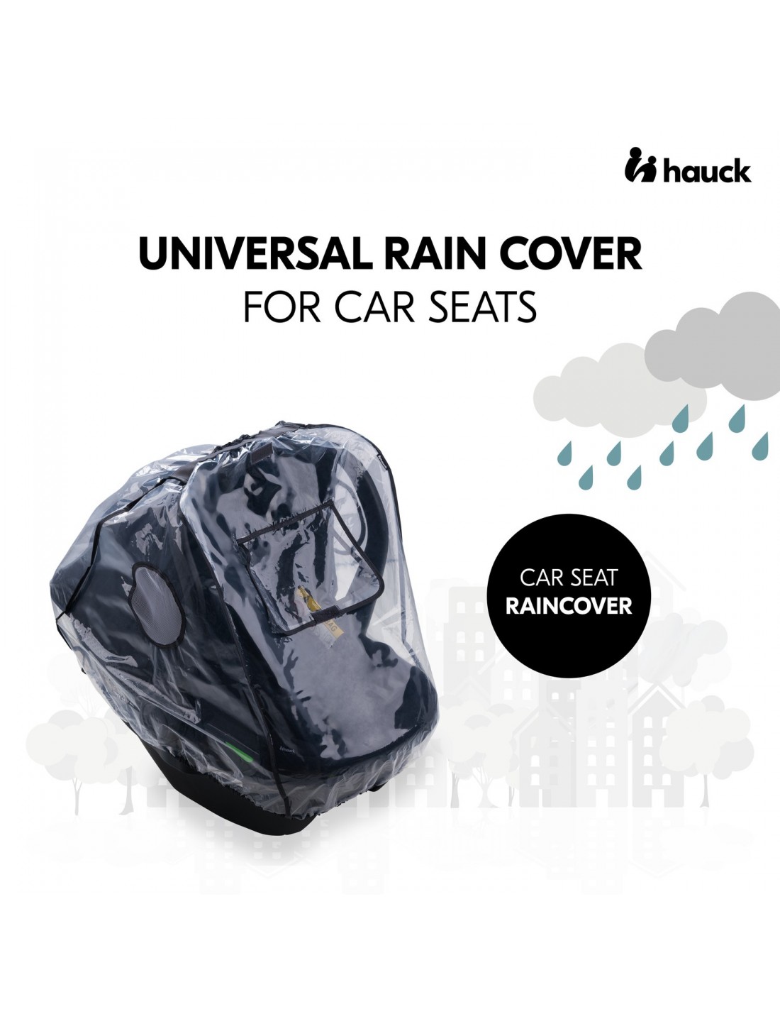 Osłona przeciwdeszczowa na fotelik samochodowy - uniwersalna osłona przeciwdeszczowa na fotelik. Trwała, bezpieczna i niezawodna ochrona przed wiatrem i deszczem. Dzięki elastycznej taśmie dookoła, osłona przeciwdeszczowa optymalnie dopasowuje się do fotelika samochodowego, pozostaje bezpiecznie na miejscu i gwarantuje, że dziecko pozostanie suche. Osłona przeciwdeszczowa jest wykonana z folii PEVA, która nie stanowi zagrożenia dla zdrowia. Łatwe przenoszenie, dobra cyrkulacja powietrza i bliskość dziecka. Praktyczny otwór na uchwyt do przenoszenia umożliwia łatwe i bezpieczne przenoszenie fotelika samochodowego z osłoną przeciwdeszczową. Boczne okna z siatki zapewniają dobrą cyrkulację powietrza. Praktyczny wizjer umożliwia szybki i łatwy dostęp do dziecka bez konieczności zdejmowania całej osłony. W razie potrzeby można zapiąć otwarte okienko u góry na rzep. Uniwersalne zastosowanie, kompaktowe składanie i łatwe przechowywanie. Mała, złożona osłona przeciwdeszczowa zajmuje niewiele miejsca. Zmieści się w koszyku na zakupy, torbie lub organizerze wózka. Gdy pogoda nagle się zmieni, osłona przeciwwiatrowa lub przeciwdeszczowa będzie zawsze pod ręką. Osłona przeciwdeszczowa pasuje do większości fotelików dziecięcych, np. hauck Drive N Care.