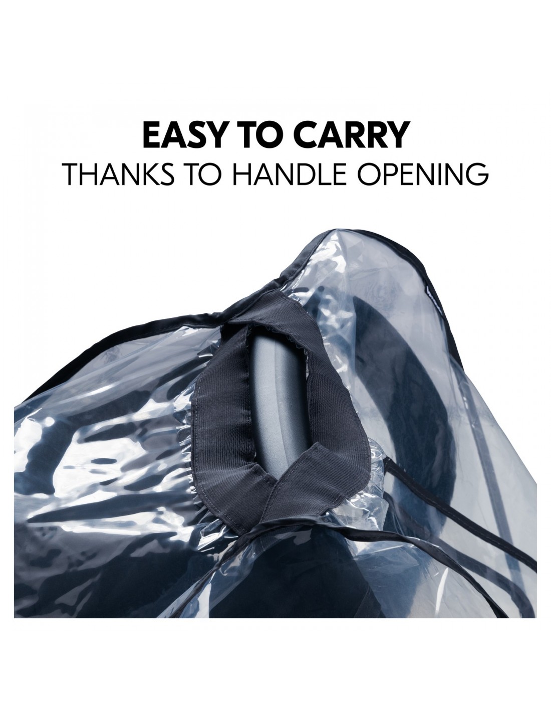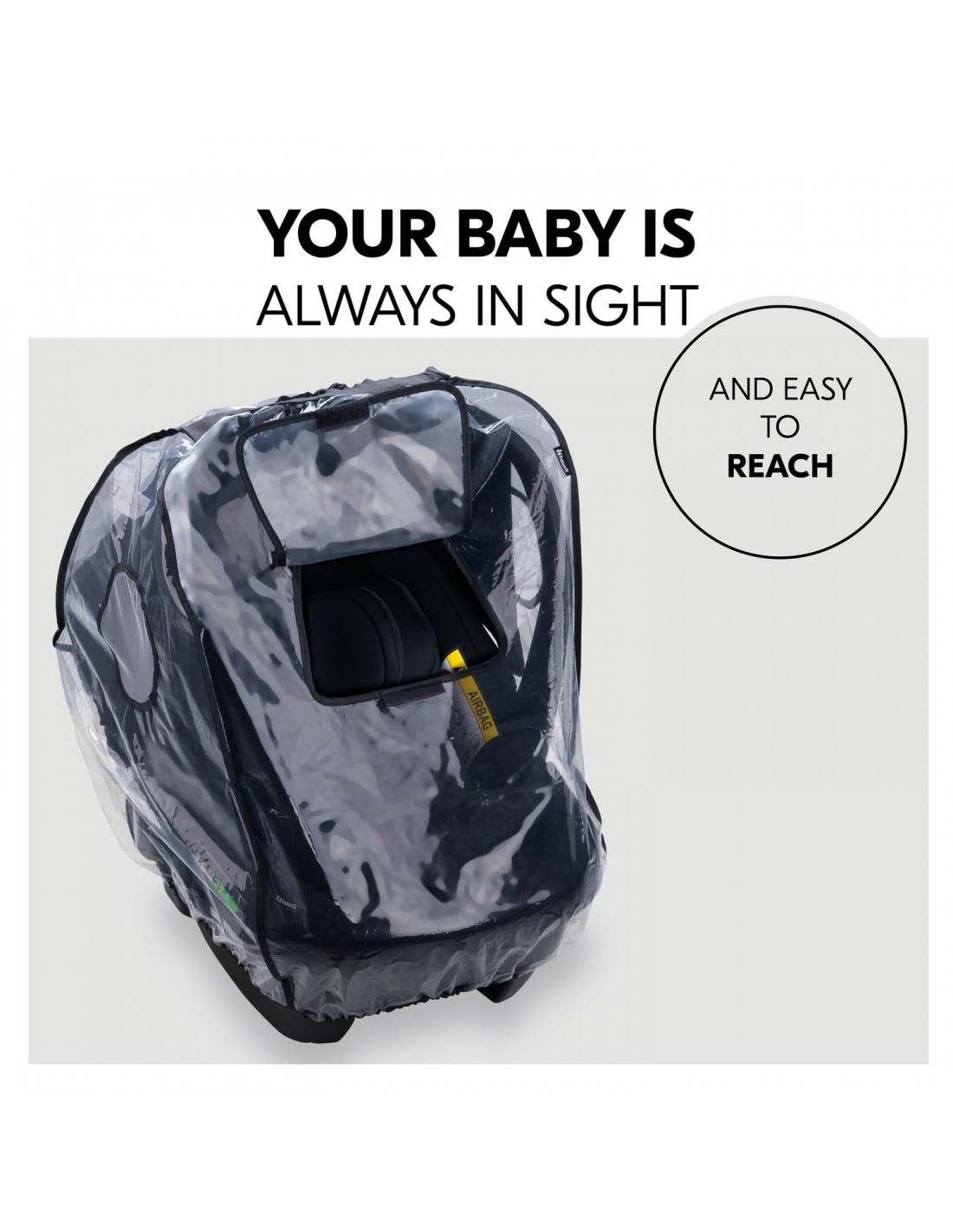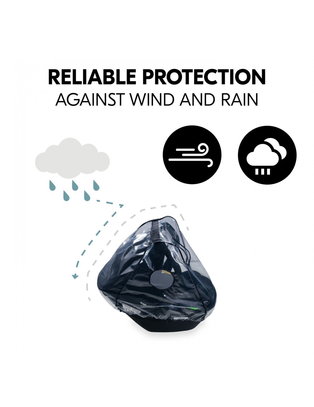 Osłona przeciwdeszczowa na fotelik samochodowy - uniwersalna osłona przeciwdeszczowa na fotelik. Trwała, bezpieczna i niezawodna ochrona przed wiatrem i deszczem. Dzięki elastycznej taśmie dookoła, osłona przeciwdeszczowa optymalnie dopasowuje się do fotelika samochodowego, pozostaje bezpiecznie na miejscu i gwarantuje, że dziecko pozostanie suche. Osłona przeciwdeszczowa jest wykonana z folii PEVA, która nie stanowi zagrożenia dla zdrowia. Łatwe przenoszenie, dobra cyrkulacja powietrza i bliskość dziecka. Praktyczny otwór na uchwyt do przenoszenia umożliwia łatwe i bezpieczne przenoszenie fotelika samochodowego z osłoną przeciwdeszczową. Boczne okna z siatki zapewniają dobrą cyrkulację powietrza. Praktyczny wizjer umożliwia szybki i łatwy dostęp do dziecka bez konieczności zdejmowania całej osłony. W razie potrzeby można zapiąć otwarte okienko u góry na rzep. Uniwersalne zastosowanie, kompaktowe składanie i łatwe przechowywanie. Mała, złożona osłona przeciwdeszczowa zajmuje niewiele miejsca. Zmieści się w koszyku na zakupy, torbie lub organizerze wózka. Gdy pogoda nagle się zmieni, osłona przeciwwiatrowa lub przeciwdeszczowa będzie zawsze pod ręką. Osłona przeciwdeszczowa pasuje do większości fotelików dziecięcych, np. hauck Drive N Care.