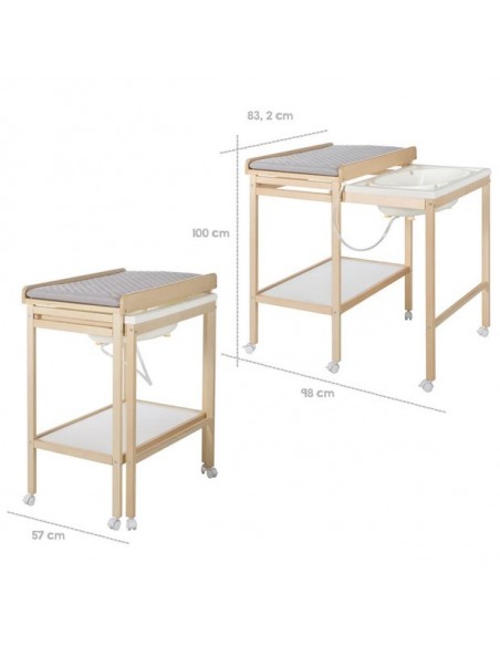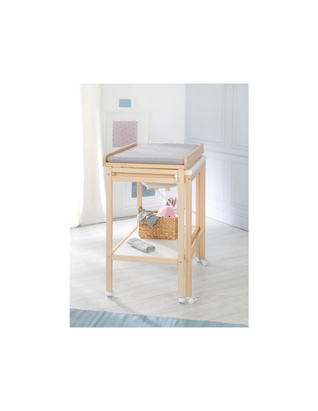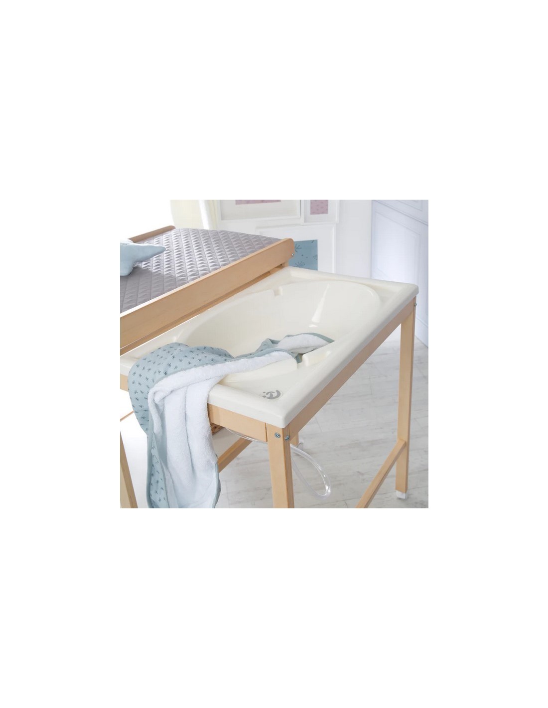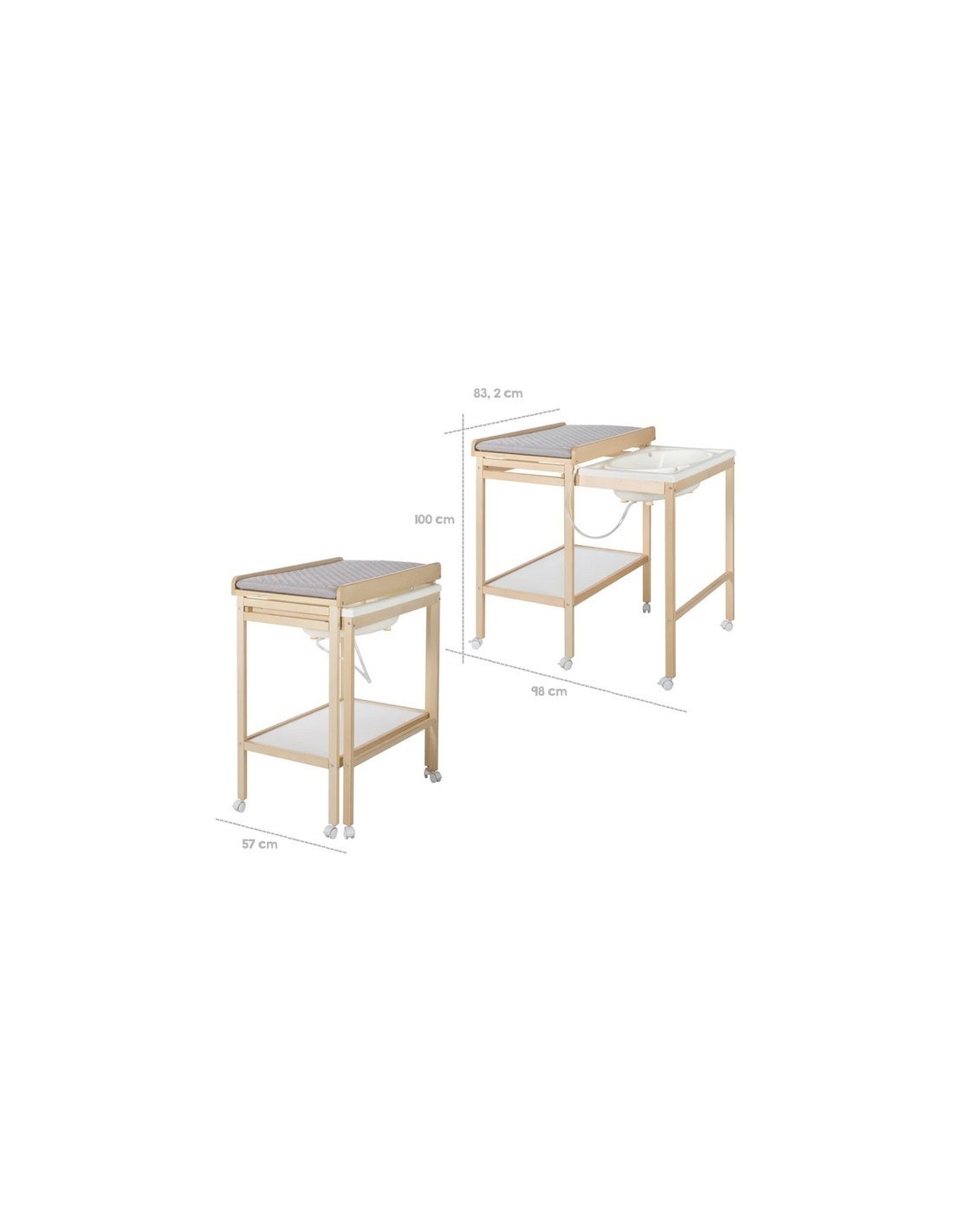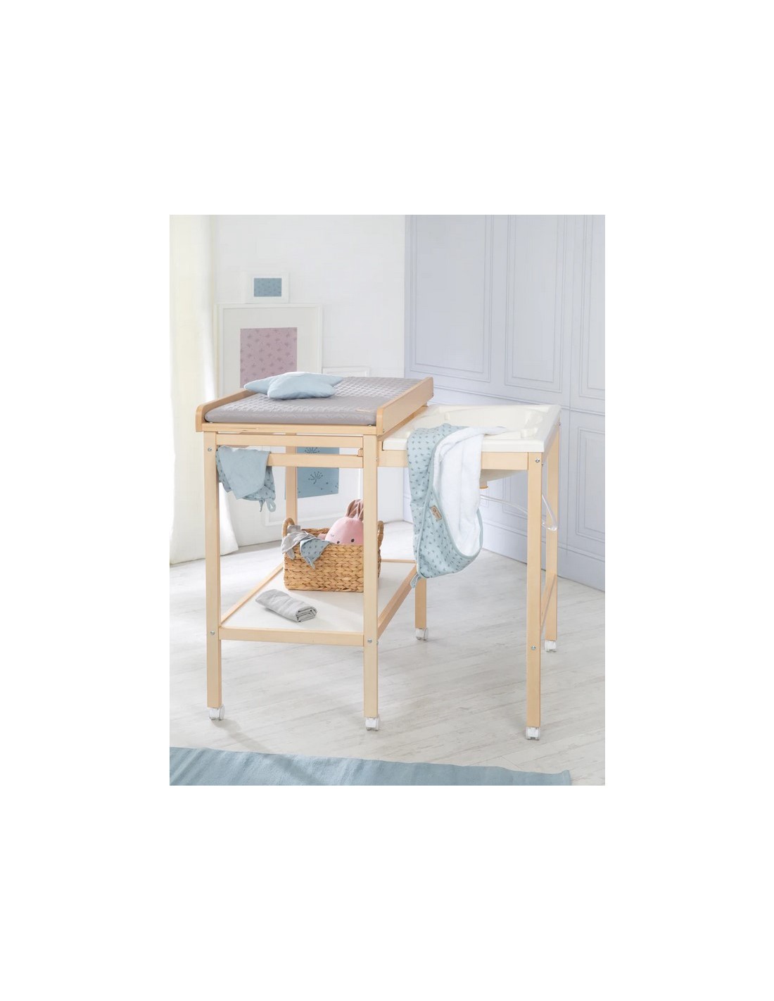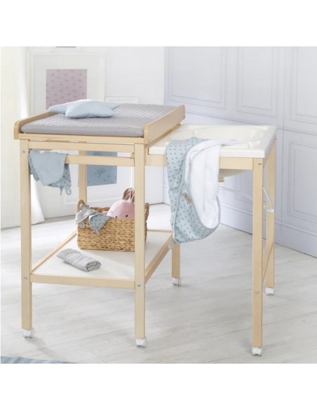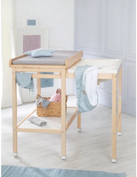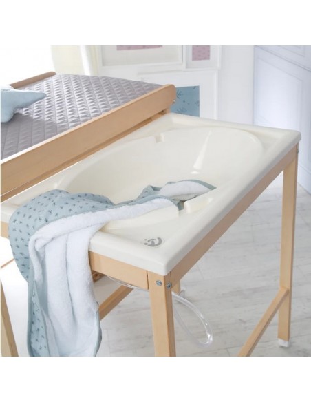 Powierzchnia maty do przewijania jest zmywalna i łatwa do czyszczenia. Połączenie wanienki i przewijaka może być używane do wagi 11 kg lub wieku 12 miesięcy.