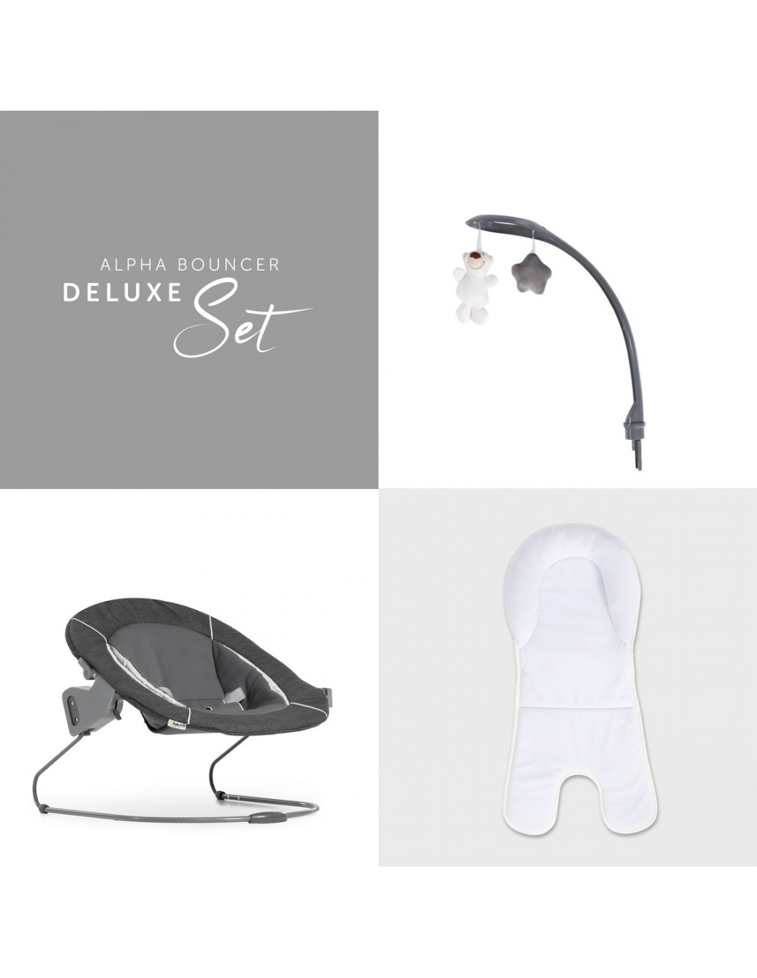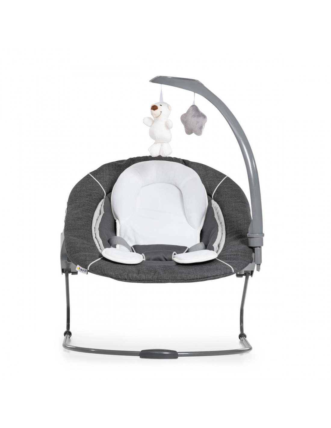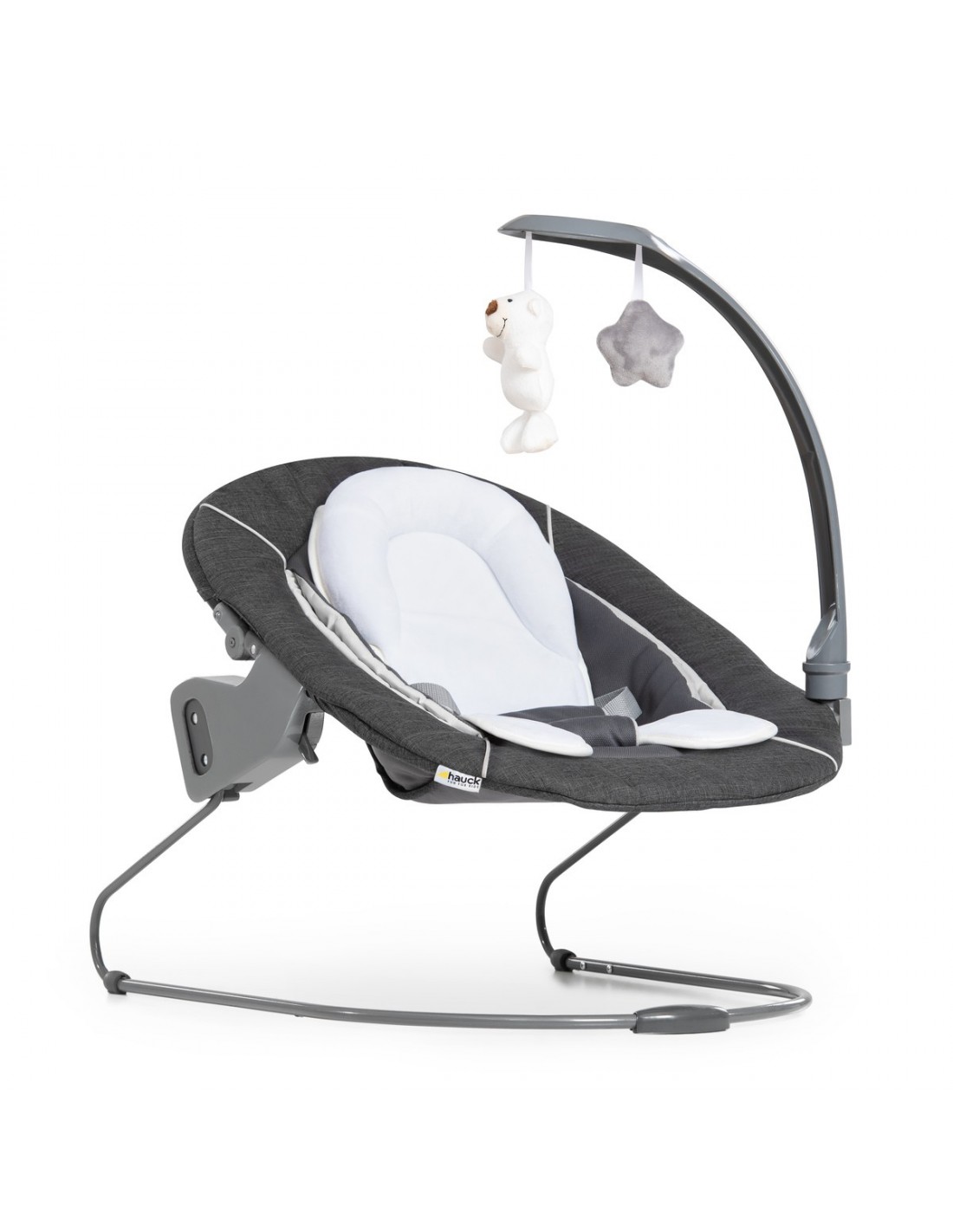 Alpha Bouncer Deluxe - idealny zestaw dla noworodka. Ten przytulny leżaczek jest kompatybilny z drewnianymi krzesełkami do karmienia hauck Alpha+ i Beta+, których można używać już od pierwszych dni życia. Noworodek poczuje się komfortowo, gdyż może znajdować się na wysokości wzroku z rodziną. Oparcie bujaka można regulować jedną ręką, a mobilna rama leżaczka to miła odmiana.