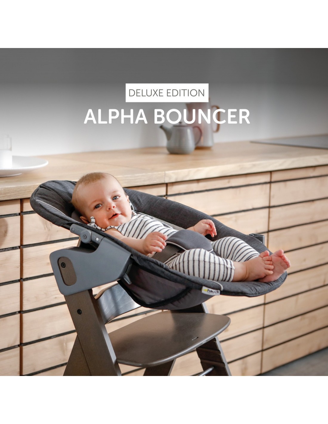 Nasza rekomendacja: kup Alpha Bouncer Deluxe i wysokie krzesełko do karmienia hauck Alpha razem i bądź doskonale wyposażony od pierwszych dni życia dziecka. Po prostu perfekcja. Zarówno krzesła Alpha+, jak i Beta+ są przeznaczone do 90 kg i są towarzyszem na lata.
