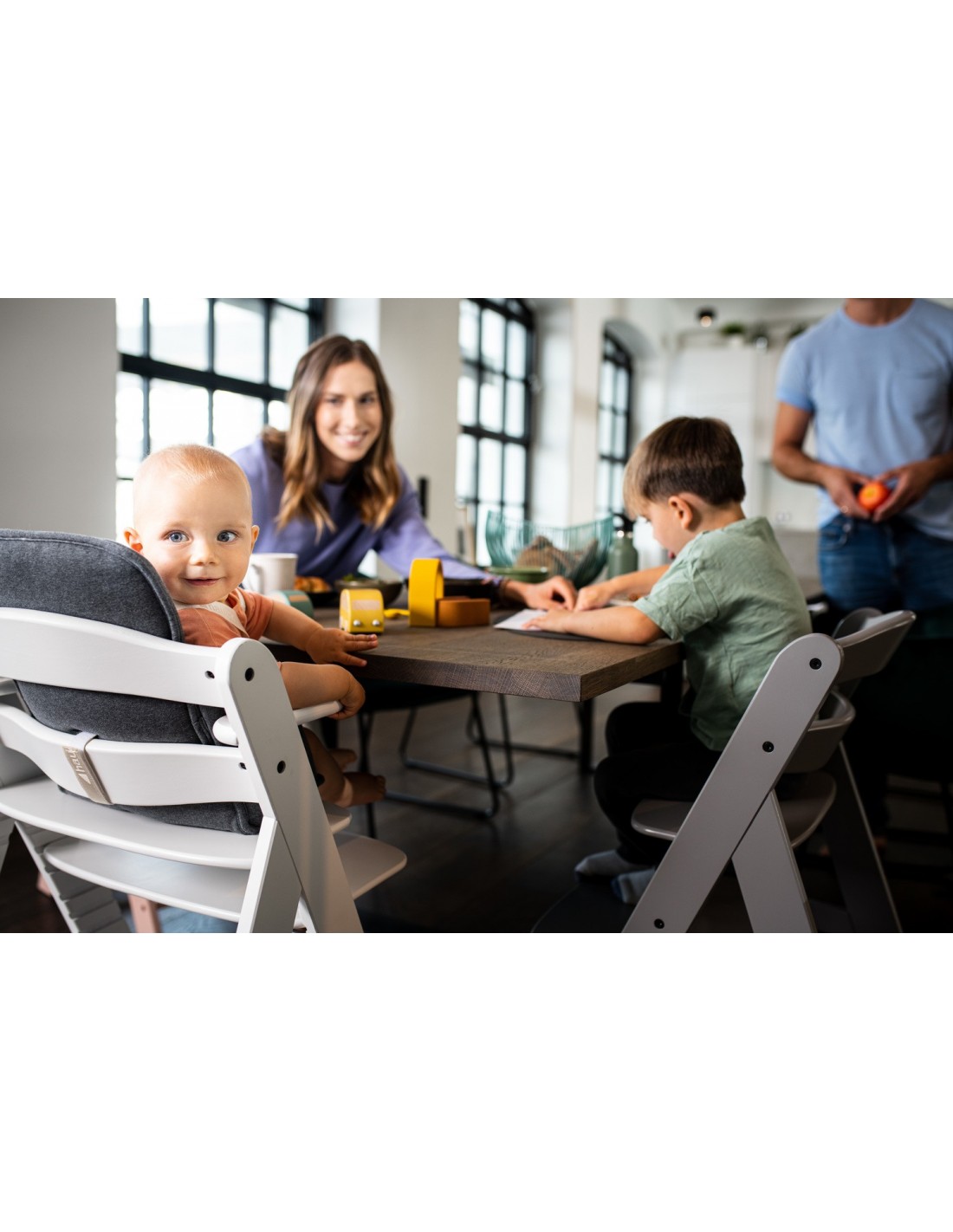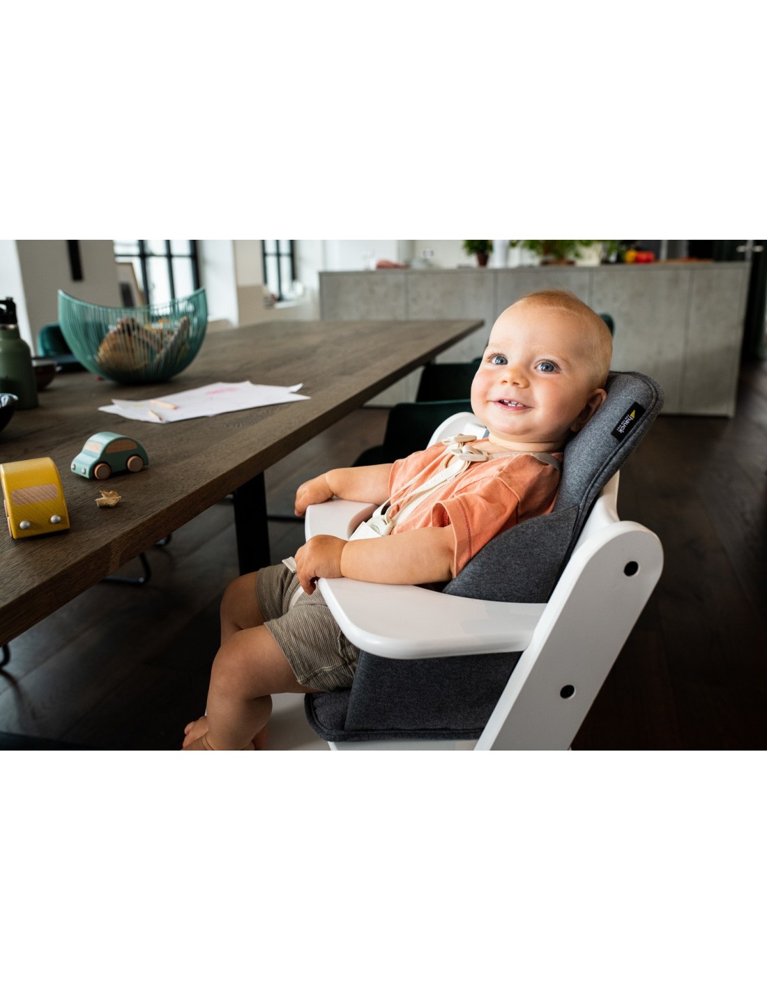 Nasz Alpha Cosy Select to reduktor siedziska o najwyższej jakości. Wyjątkowo miękka bawełniana dzianina jest przyjemna w dotyku, oddychająca reguluje wilgoć. Dodatkowo wyjątkowo wysokie oparcie i wzmocnione poduszki boczne zapewniają dziecku bezpieczną i wygodną pozycję do siedzenia. Alpha Cosy Select uzupełnia drewniane krzesełko ALPHA+ Select w najwyższej jakości i jest gotowe do użycia w ciągu kilku sekund. Dzięki powłoce antypoślizgowej, idealnemu dopasowaniu i łatwemu do dostosowania systemowi pasów, ten reduktor siedziska zawsze pozostanie na miejscu. Nasza rekomendacja: reduktor siedziska Alpha Cozy Select może być również używany w połączeniu z dostępną oddzielnie tacą Alpha Wooden Tray lub Alpha Tray. Ponadto, ten reduktor jest również kompatybilny z podobnymi krzesełkami.