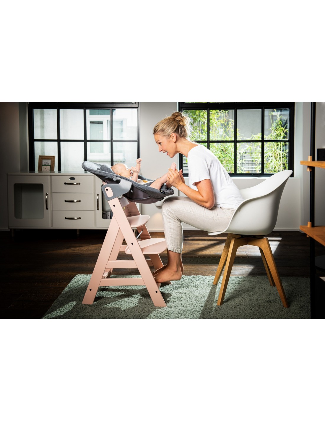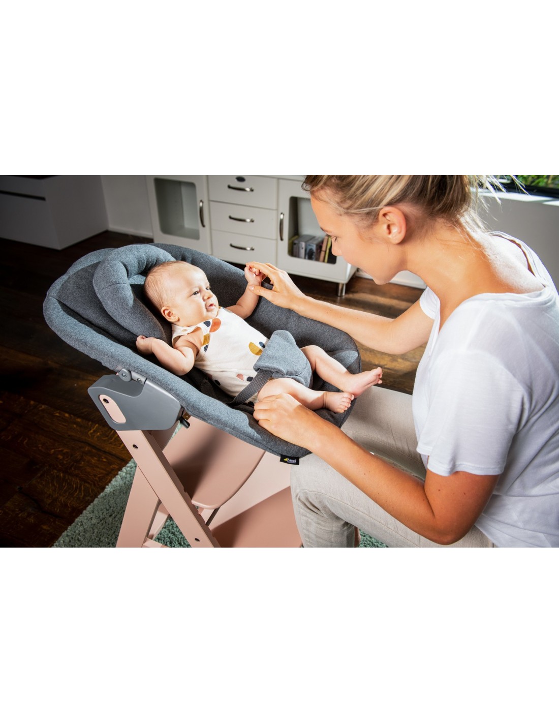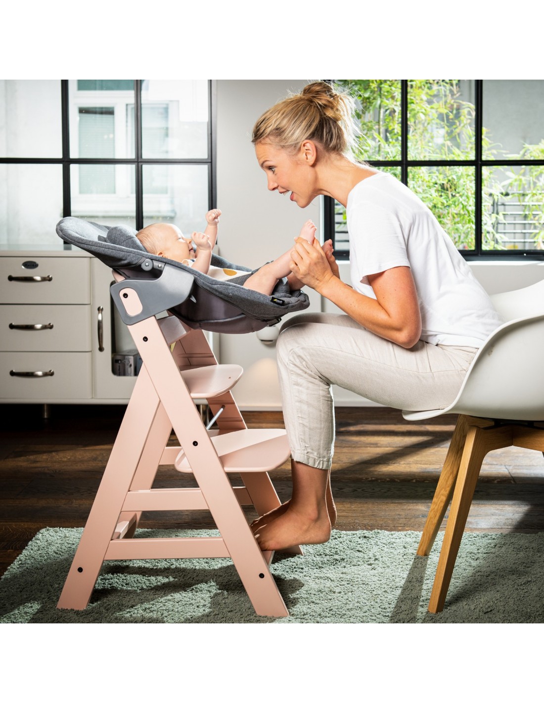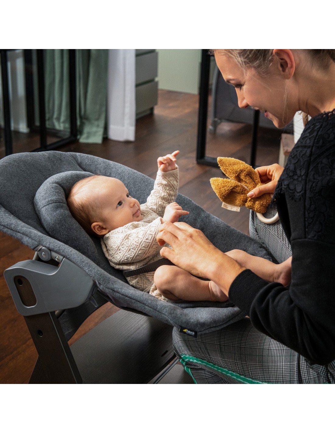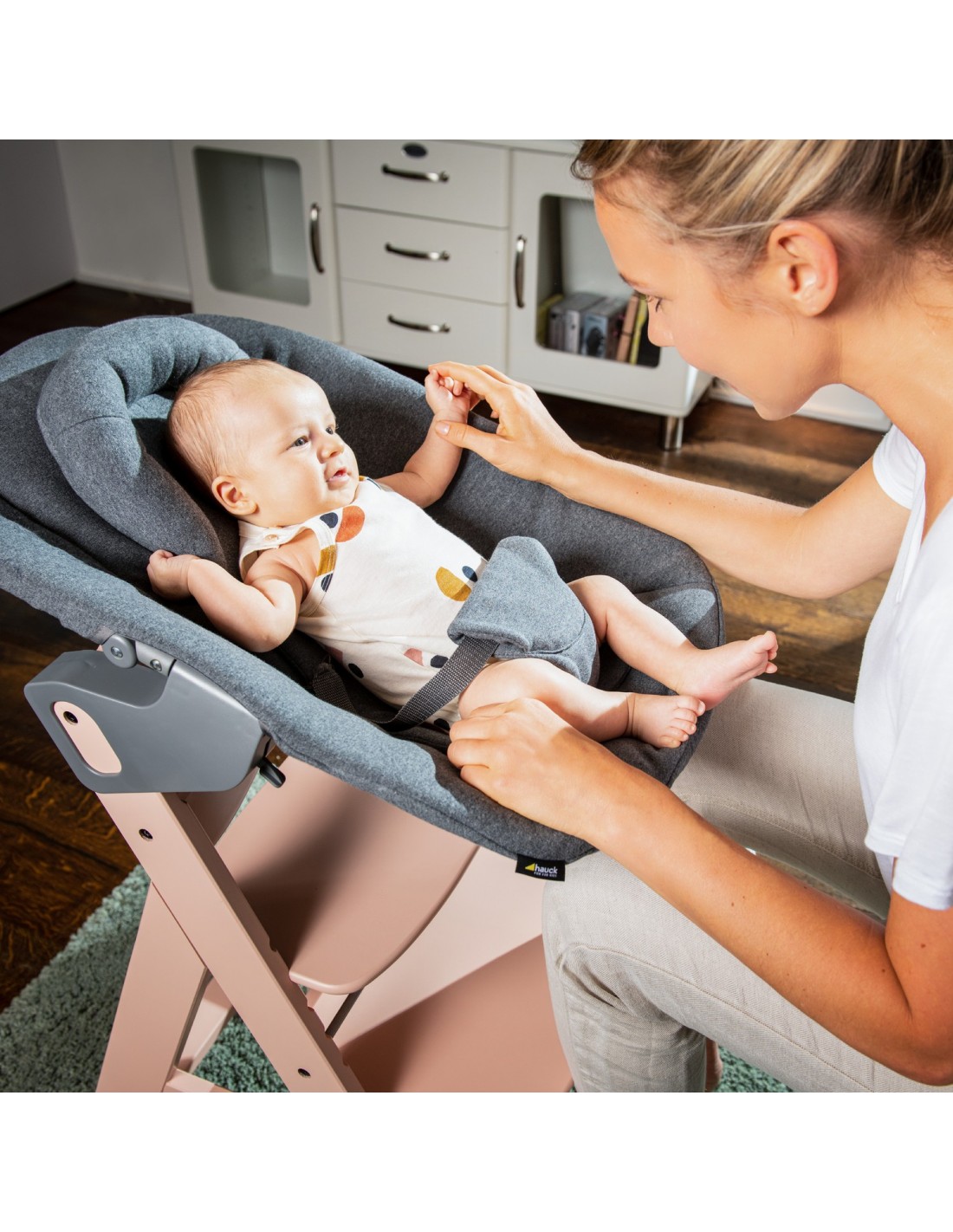 Bardzo wygodny leżaczek Alpha Bouncer Premium gwarantuje najwyższą jakość od pierwszych dni życia. Uniwersalny fotelik dla noworodków ma nie tylko dużą powierzchnię do leżenia, ale także super miękki i oddychający materiał bawełniany. W zestawie znajduje się również rama leżaczka. Na wspaniałe rodzinne chwile możesz połączyć leżaczek z drewnianym krzesełkiem ALPHA+. W ten sposób możesz karmić malucha nie tylko na wysokości wzroku, ale także w wygodnej pozycji. Oparcie leżaczka można odchylić jedną ręką. W pierwszym okresie życia noworodka możesz użyć miękkiego reduktora siedziska ze wzmocnionym zagłówkiem, który zapewnia wsparcie dla głowy dziecka. Wyściełane 3-punktowe pasy zapewniają dziecku bezpieczeństwo. Aby zmienić miejsce, możesz zamocować fotelik dla niemowląt na ramie leżaczka, dzięki czemu Alpha Bouncer Premium będzie poruszać się zgodnie z ruchami dziecka lub pozostawać nieruchomo. Nasza rekomendacja: Możesz łączyć leżaczek Alpha Bouncer Premium ze wszystkimi modelami krzesełek ALPHA+. Stylowym rodzicom polecamy krzesełko ALPHA+ Select.