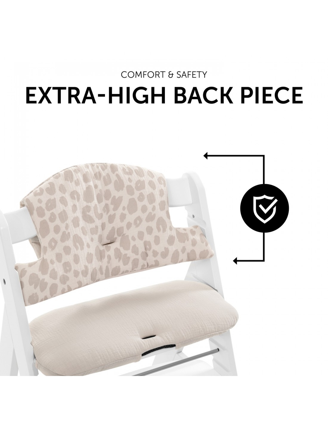 KOMFORTOWY POMNIEJSZACZ SIEDZISKA Z OBUSTRONNIE WYMOSZCZONĄ PODUSZKĄ POD PLECY Dwuczęściowa nakładka służy jako pomniejszacz siedziska przede wszystkim w pierwszych miesiącach, w których twoje dziecko siedzi w drewnianym krzesełku Alpha+. Obustronnie wymoszczona poduszka pod plecy, wraz z miękką poduszką na siedzisko zapewniają dziecku stabilność i wysoki komfort siedzenia. Poduszka wykonana z miękkiego muślinu jest szczególnie przyjazna dla skóry twojego maleństwa. Dwuwarstwowo utkana tkanina bawełniana zapewnia wymianę powietrza i reguluje wilgotność. Zapobiegając kumulacji powietrza jest przyjemna dla twojego dziecka również w ciepłe dni. Wysokiej jakości nakładka posiada od spodu powłokę antypoślizgową. W ten sposób poduszka nie przesuwa się, nawet podczas zabawy z twoim dzieckiem. Highchair Pad Select nadaje się do każdego drewnianego krzesełka hauck, wraz z obydwomu systemami zapięć. Nakładka pasuje idealnie do drewnianych krzesełek hauck, bo została ona specjalnie dla nich zaprojektowana. Mocuje się ją łatwo i szybko za pomocą zatrzasków. Highchair Pad Select jest kompatybilny ze stolikiem Alpha Tray - w ten sposób dostępny osobno stolik, jak i miękko wymoszczona nakładka mogą być jednocześnie zamocowane do drewnianego krzesełka.