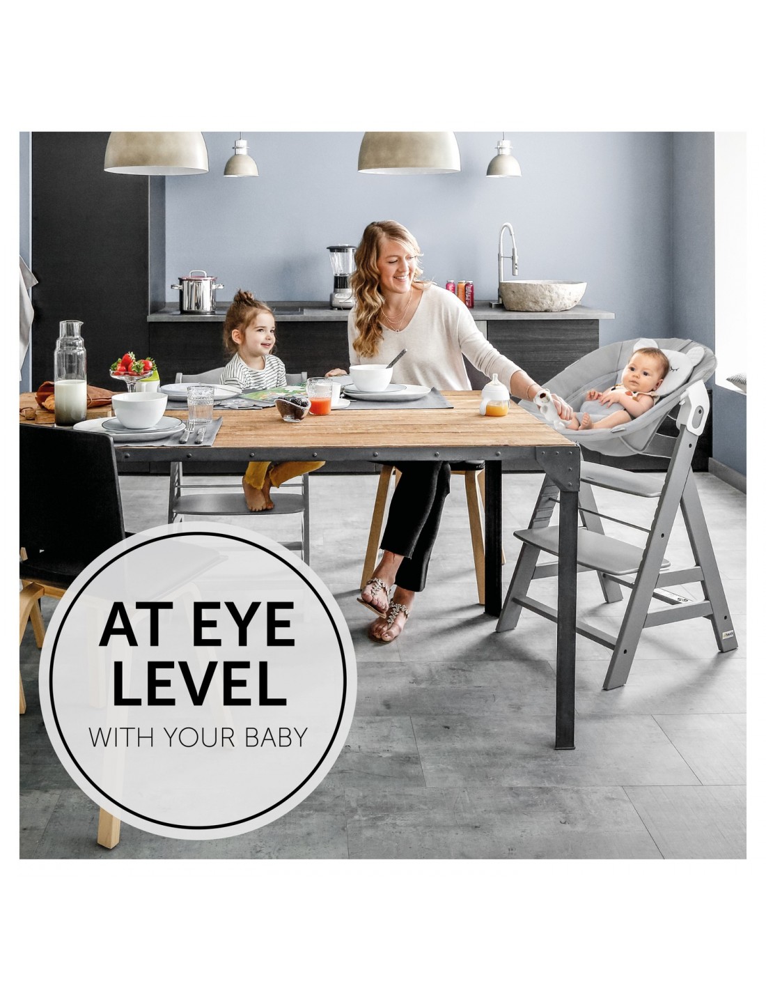 2 W 1 KOŁYSKA DZIECIĘCA I NAKŁADKA DLA NOWORODKA NA KRZESEŁKO DREWNIANE HAUCK Leżaczek 2 w 1 Alpha Bouncer spełnia dwie funkcje: służy jako kołyska wraz z dostarczonym w komplecie stelażem lub jako nakładka na drewniane krzesełko do karmienia Alpha+. Dzięki temu rozwiązaniu twoje maleństwo jest już od początku z wami przy stole, uczęstnicząc w pełni w życiu rodzinnym. Przy pomocy kilku ruchów Alpha Bouncer nakładany jest na boki stabilnego krzesełka do karmienia, będąc bezpiecznie zamocowanym i gotowym od razu do użycia. W ten sposób twój skarb jest zawsze przy tobie, na wysokości oczu, co wzmacnia waszą więź oraz jest wygodne dla twoich pleców podczas karmienia buteleczką. 3-punktowe zapięcie zabezpiecza twoje dziecko. Miękki materiał pokrowca, boczne obicie i wyjmowana wkładka pomniejszająca zapewniają niemowlęciu płaską, ergonomiczną pozycję leżącą oraz bezpieczeństwo i komfort. Przytulne tkaniny delikatnie otulają skórę dziecka. Poszycie może być zdjęte i wyprane. Zmiana funkcji Alpha Bouncer z nakładki na krzesełko w kołyskę jest bardzo prosta: jednym ruchem uwalniasz nadstawkę z krzesełka i nakładasz ją na dostarczony stelaż, tworząc w ten sposób bujaczek. Dziecko wprawia kołyskę własnymi ruchami ciała w lekkie kołysanie, co działa na nie uspokajająco.