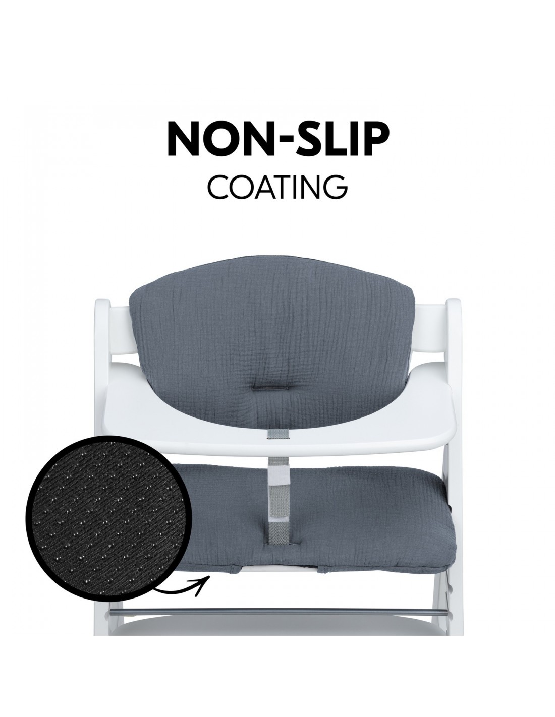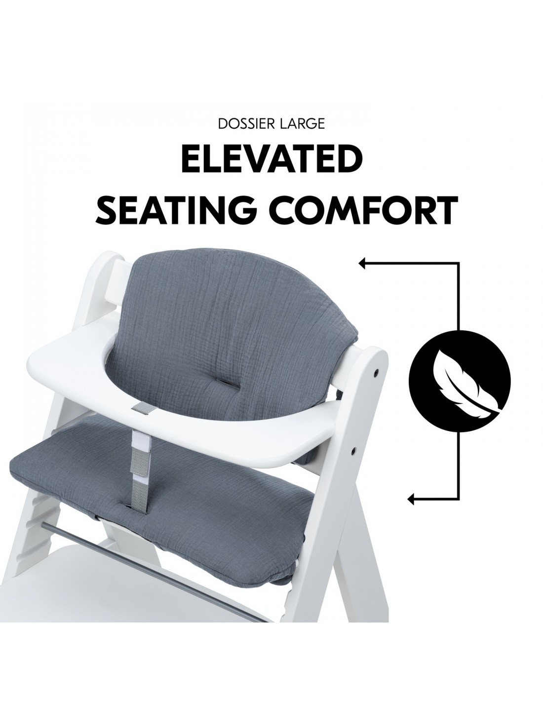 Zarówno siedzisko jak i oparcie są wykonane z wysokiej jakości wyściółki i oferują najwyższy komfort. Umożliwiają dokładne zamocowanie na dwóch typach naszych drewnianych wysokich krzesełek dla dzieci i mogą być w prosty sposób zdemontowane w celu wyprania.