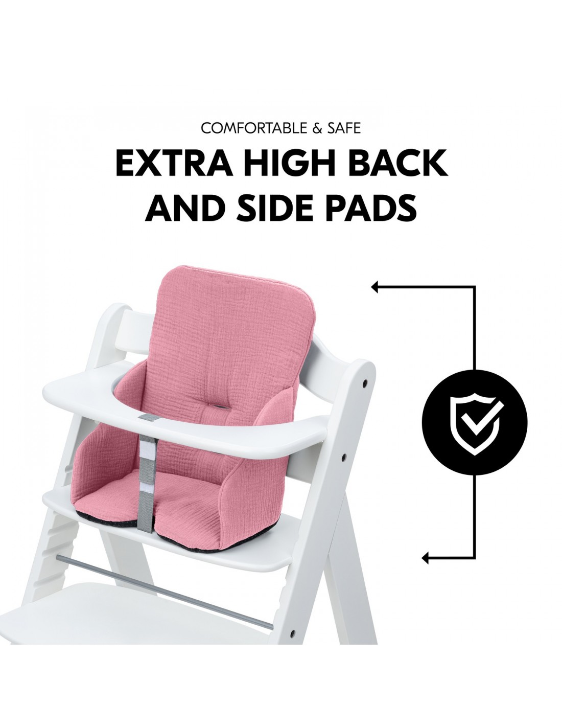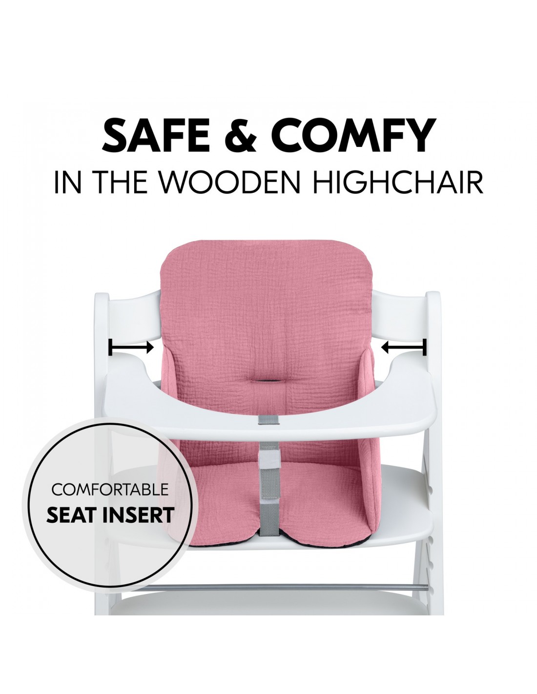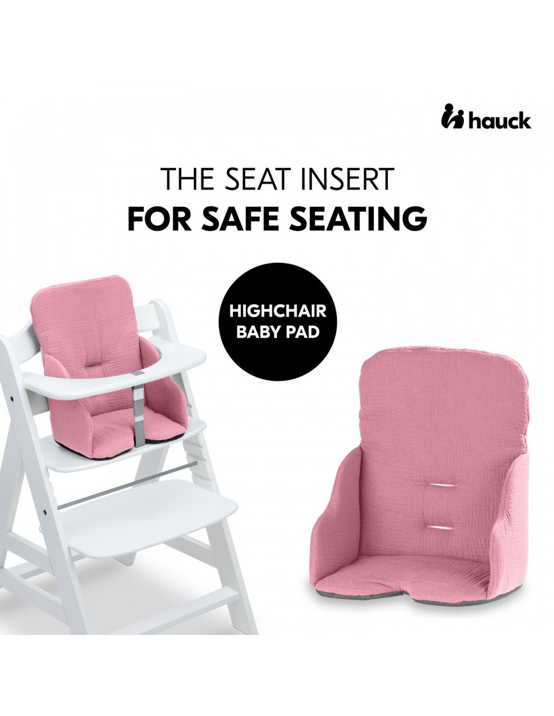 Gdy dziecko jest w stanie samodzielnie siedzieć, siedzisko Baby Pad zapewnia bezpieczną i wygodną pozycję siedzącą. Wyściółka jest kompatybilna z drewnianymi krzesełkami do karmienia hauck Alpha+ i Beta+ lub podobnymi modelami. Wkładka został wyprodukowany w Europie i przetestowany zgodnie z najsurowszymi wymogami OEKO-TEX® STANDARD 100, dzięki czemu zapewni dziecku zdrowy start w życie. Bawełniany muślin jest bardzo miękki w dotyku i zapewnia dziecku oddychalność i regulację temperatury nawet w cieplejsze dni.
