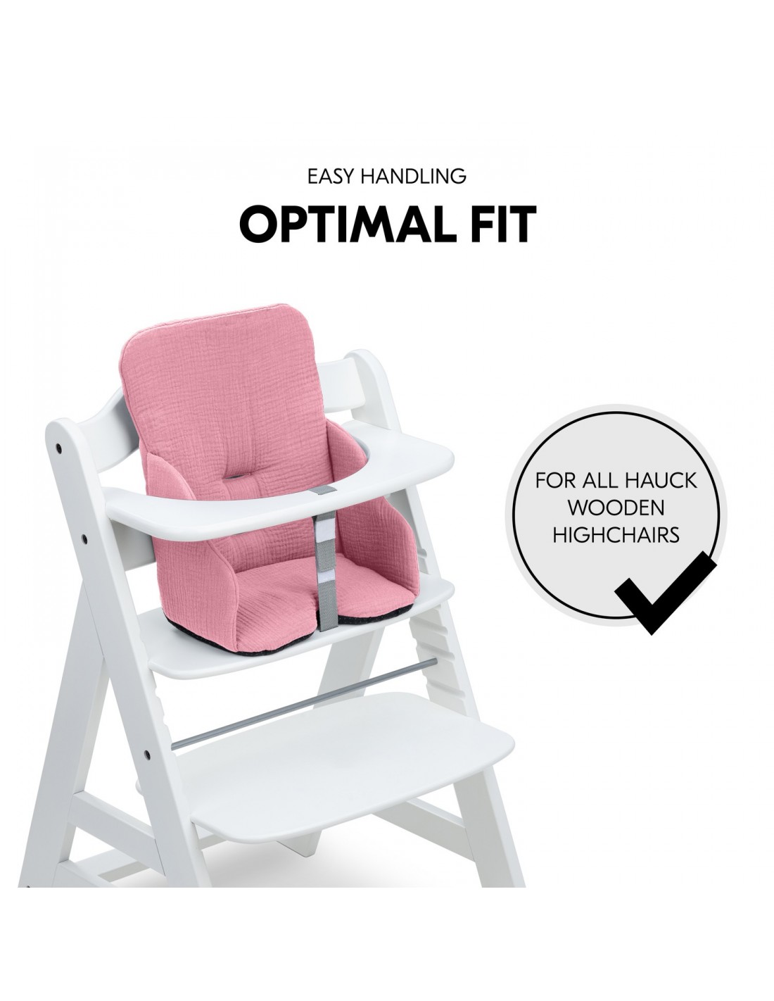 Podkładka Baby Pad idealnie pasuje do drewnianych krzesełek hauck, zapewniając łatwą i szybką instalację. Po jedzeniu siedzisko można bardzo łatwo zdjąć i w razie potrzeby wyprać w pralce w temperaturze 30 stopni. Dzięki kompatybilności z różnymi akcesoriami, takimi jak pasy bezpieczeństwa Alpha+ i różne tace, można używać fotelika zgodnie z indywidualną syt