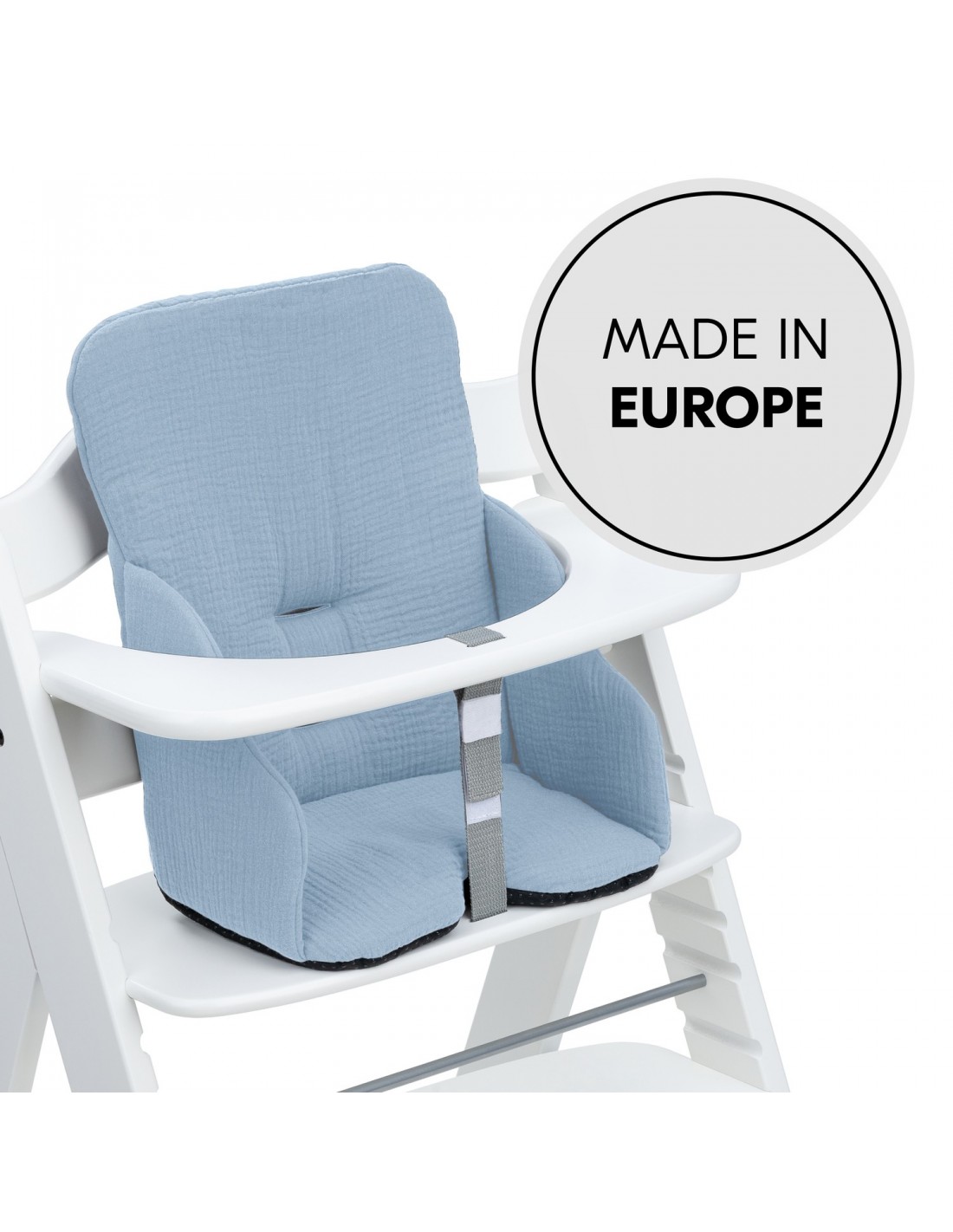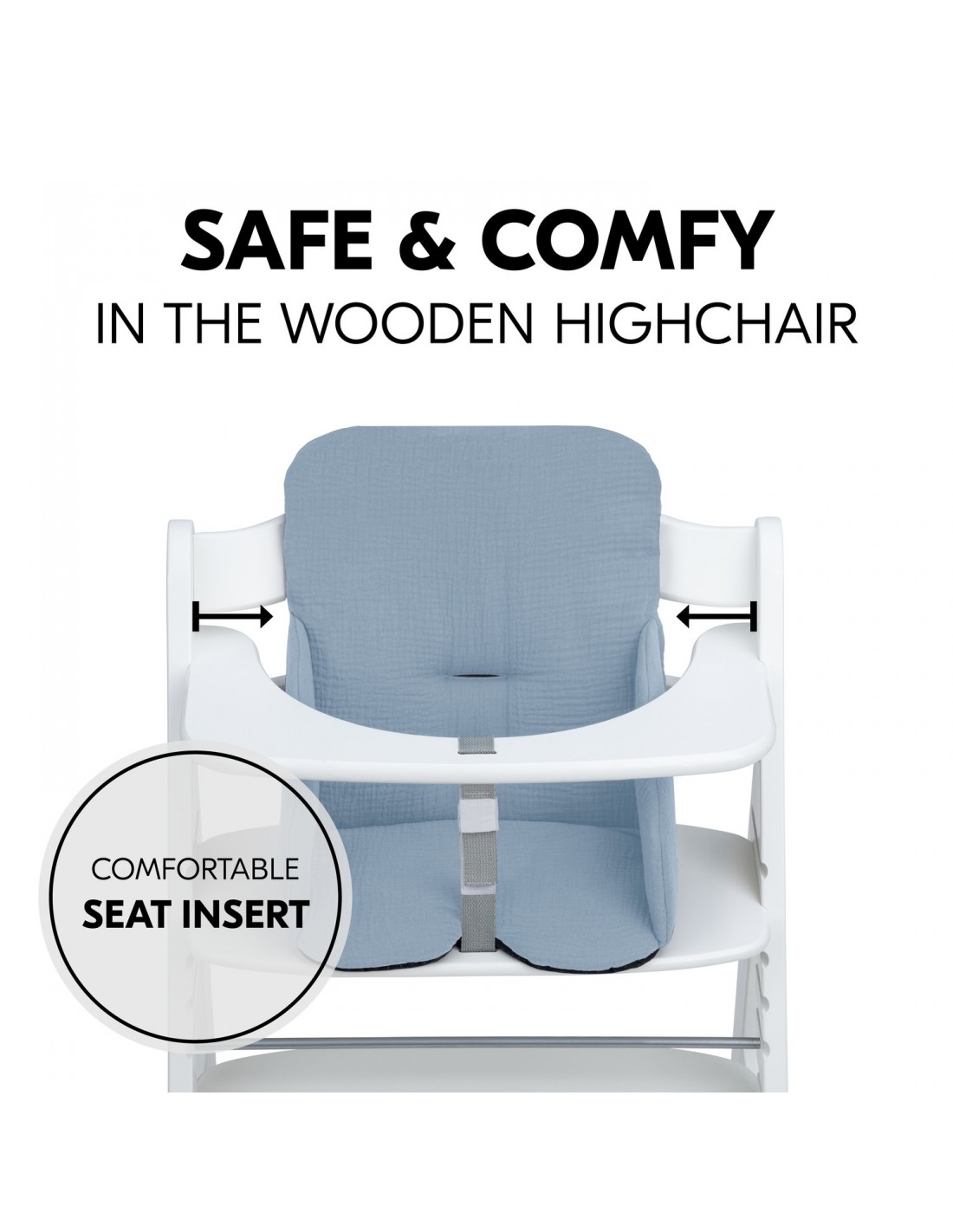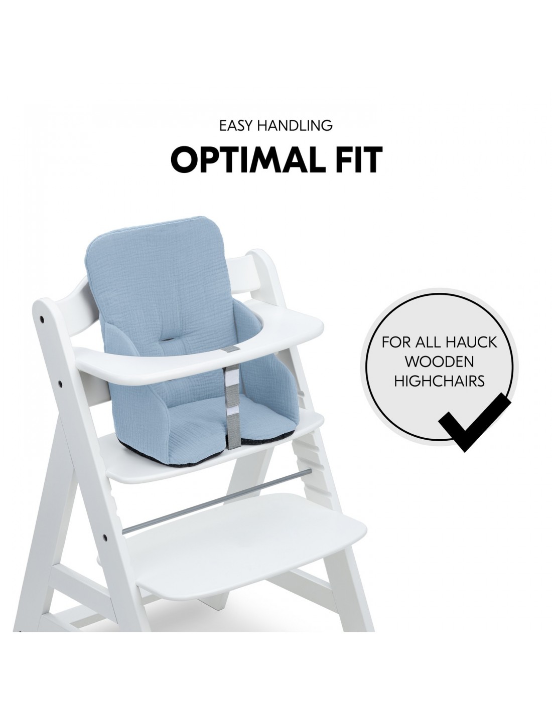 Gdy dziecko jest w stanie samodzielnie siedzieć, siedzisko Baby Pad zapewnia bezpieczną i wygodną pozycję siedzącą. Wyściółka jest kompatybilna z drewnianymi krzesełkami do karmienia hauck Alpha+ i Beta+ lub podobnymi modelami. Wkładka został wyprodukowany w Europie i przetestowany zgodnie z najsurowszymi wymogami OEKO-TEX® STANDARD 100, dzięki czemu zapewni dziecku zdrowy start w życie. Bawełniany muślin jest bardzo miękki w dotyku i zapewnia dziecku oddychalność i regulację temperatury nawet w cieplejsze dni.