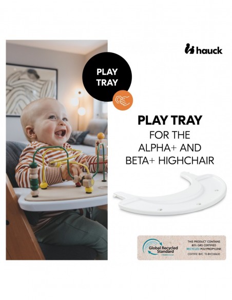 Łatwa do wycierania taca do zabawy jest wykonana z materiału pochodzącego z recyklingu, który jest certyfikowany zgodnie z Global Recycled Standard (GRS).