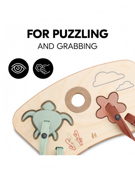 Mocno przymocowany do krzesełka i bez luźnych części: W przypadku Play Puzzling S elementy układanki zatrzaskuje się za pomocą przycisku. Gra