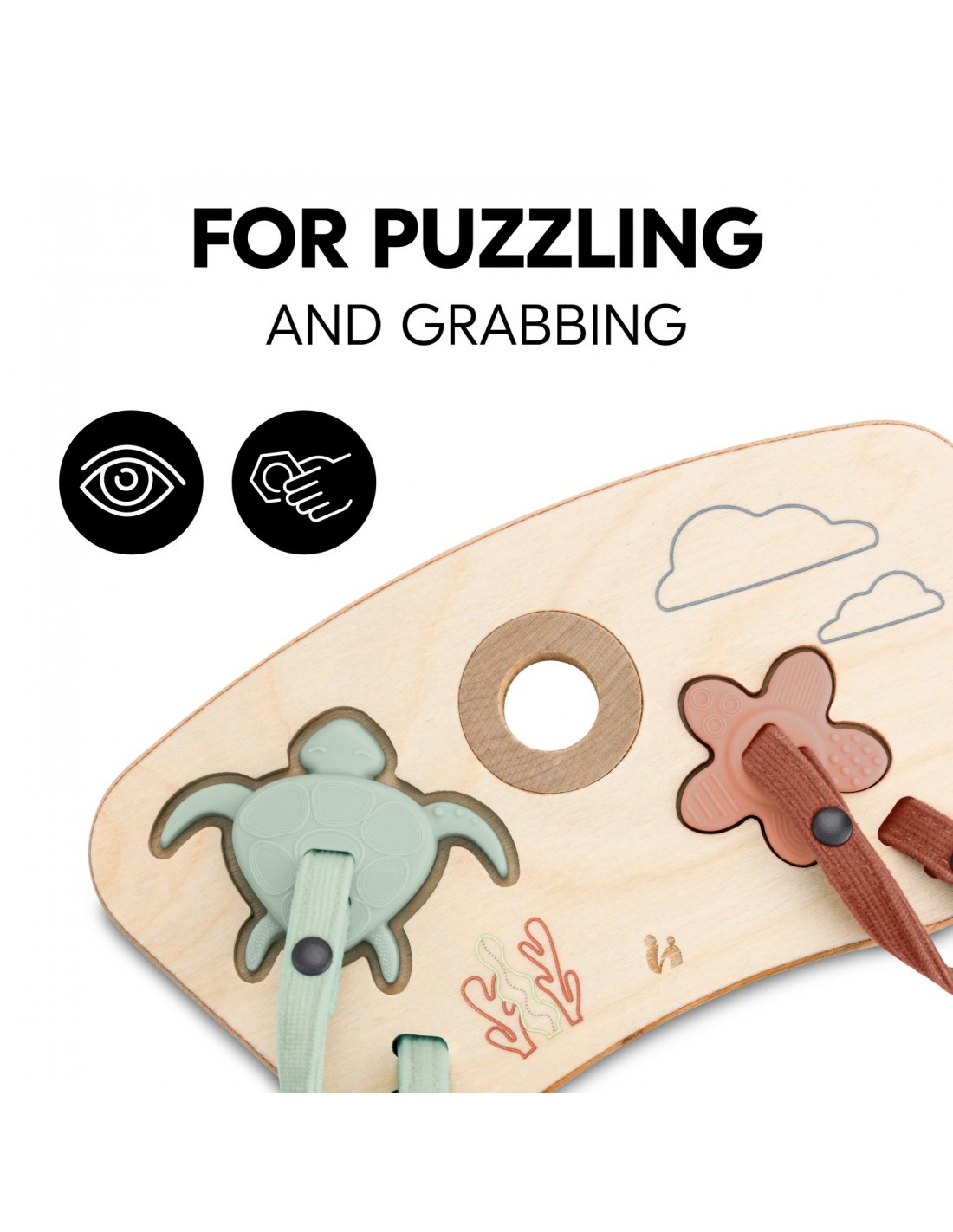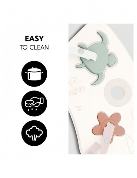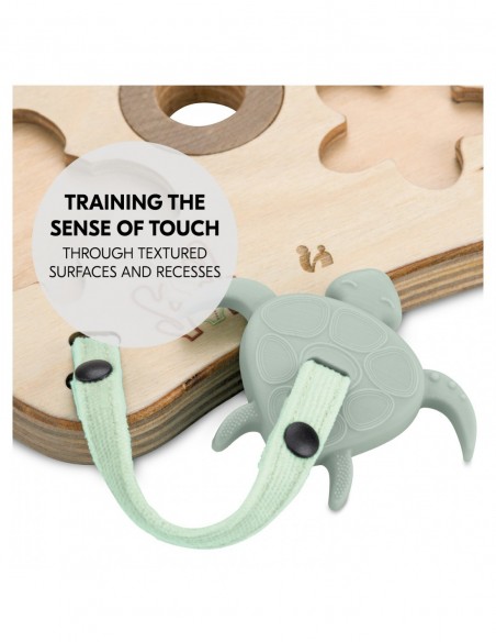 Puzzle do zabawy w krzesełku do karmienia wykonane z bezpiecznego dla żywności silikonu. Kwiatek i żółw na Play Puzzling S wyglądają uroczo.