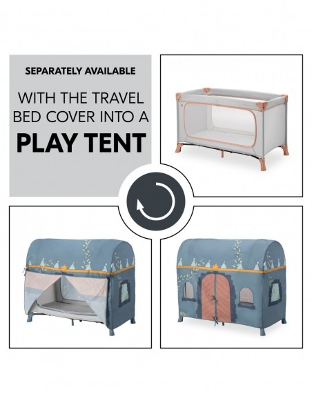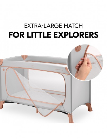 Dzieci chcą wszystko odkrywać. Dream N Play Plus ma duży właz, który można otworzyć z zewnątrz. Dzięki temu dziecko może samodzielnie wyczołgać się z łóżeczka. A dzięki dodatkowemu pokrowcowi Travel Bed Cover łóżko staje się namiotem do zabawy.