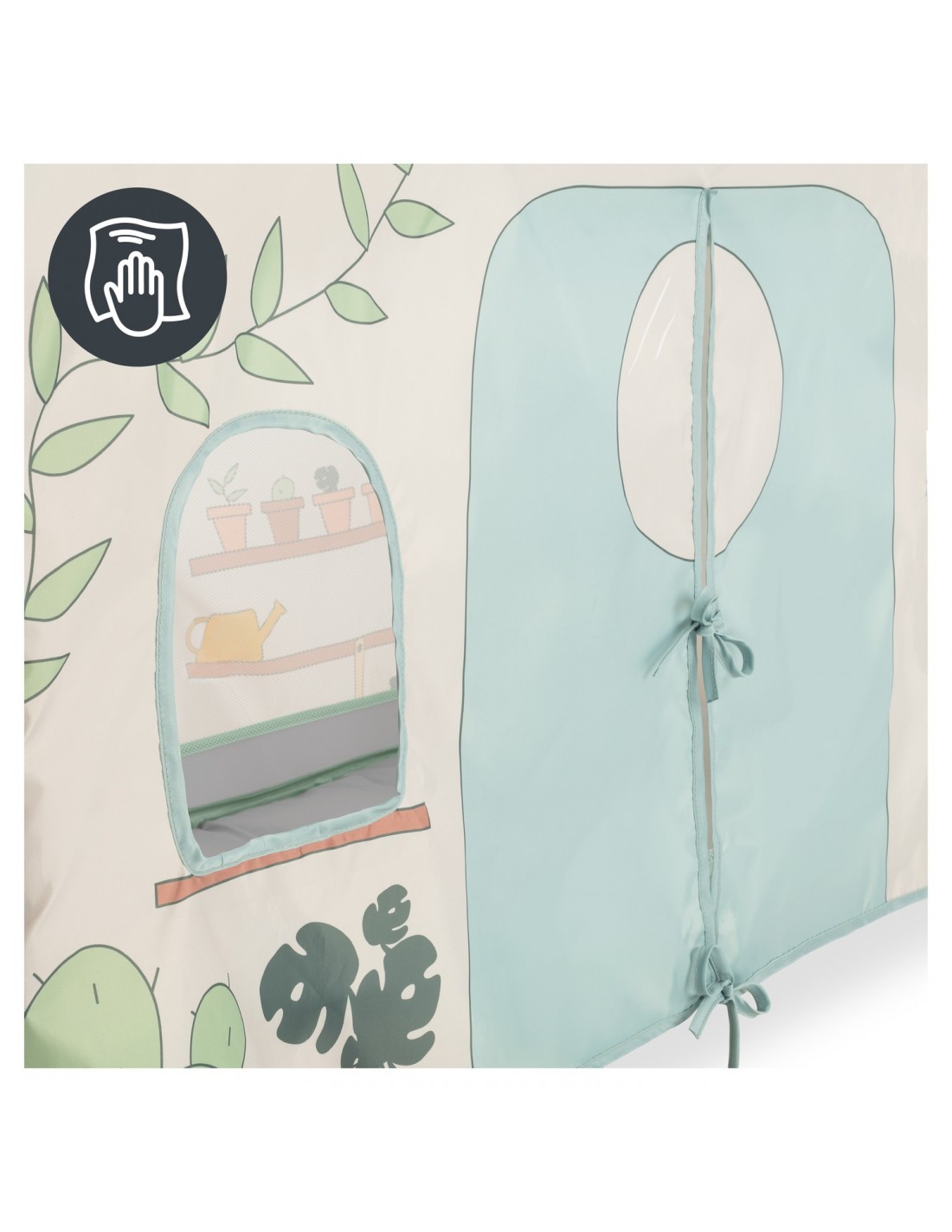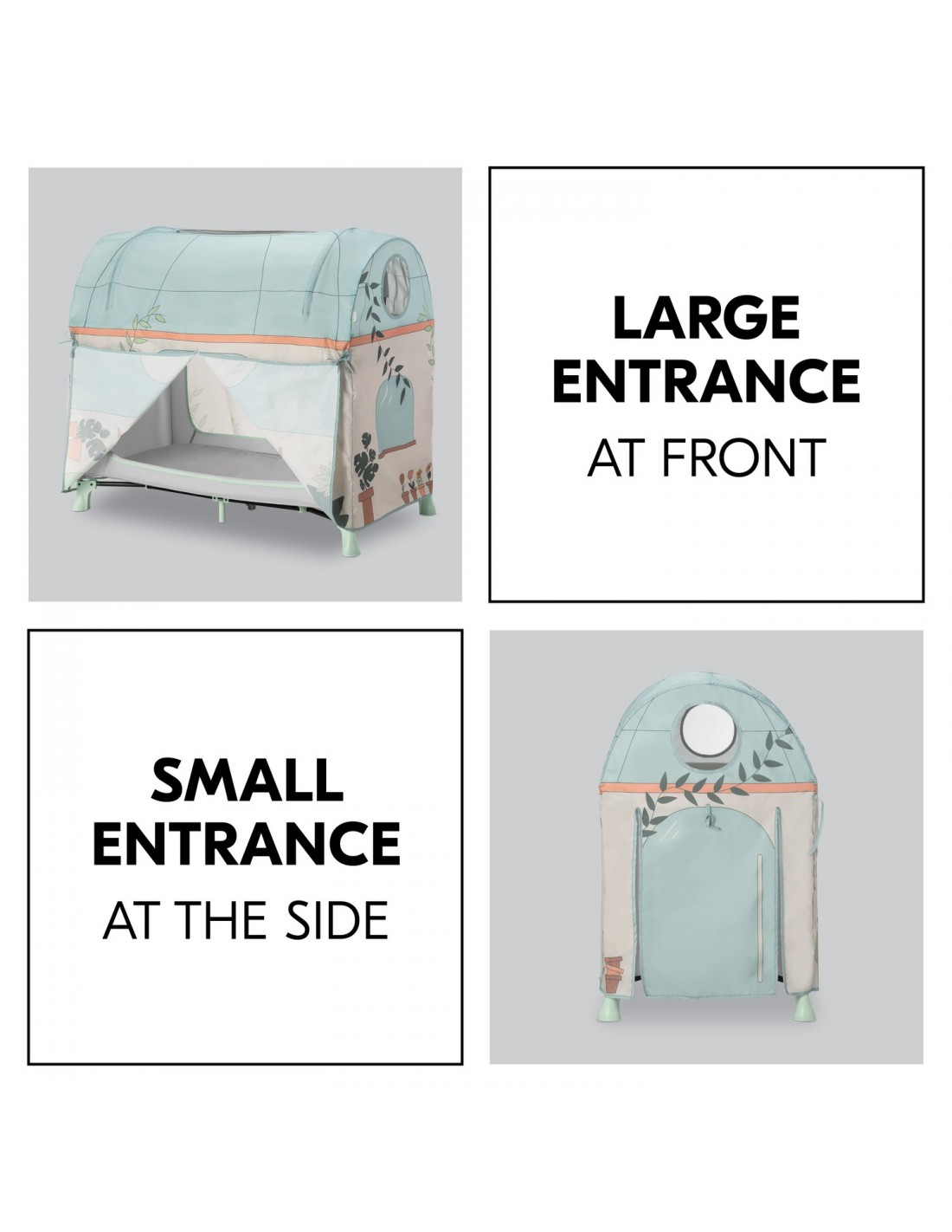 To znacznie więcej niż dekoracja: Twoje dziecko może bawić się oknami i wejściami w pokrowcu na łóżeczko turystyczne. Pozwalają one na
