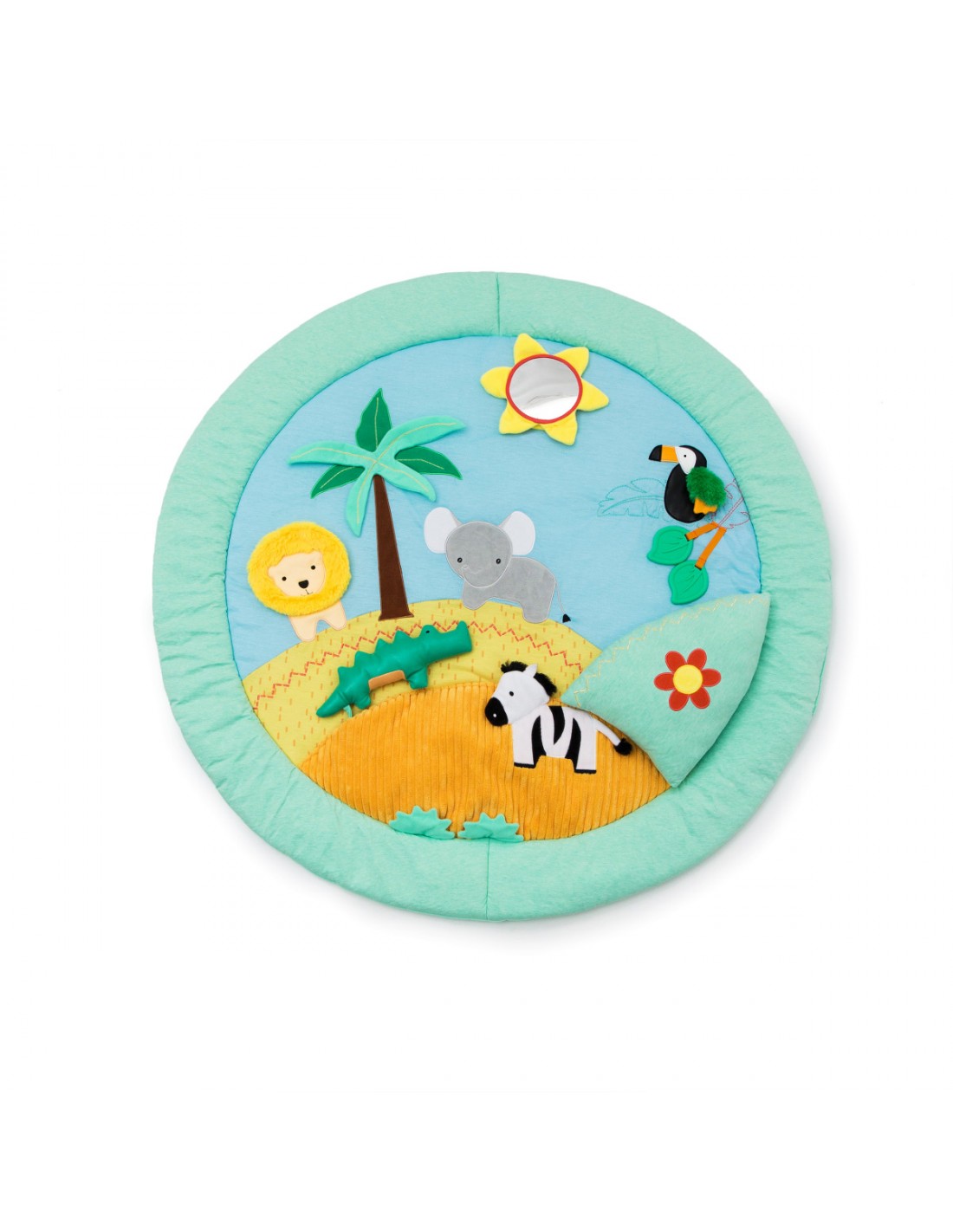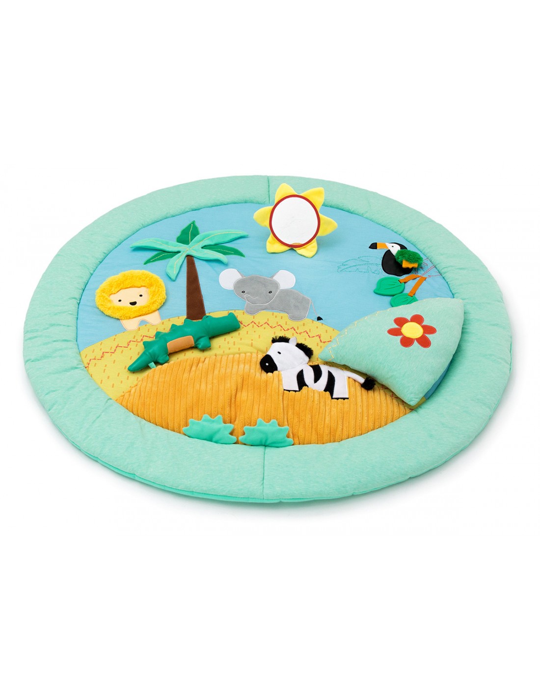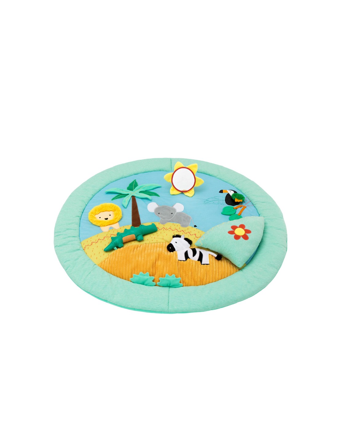 Mata edukacyjna dla dzieci z motywem dżungli pozwala stworzyć miejsce idealne do zabawy, które pobudza zmysły dziecka i pomaga mu odkrywać świat. Doskonale stymuluje wzrok i słuch, a dzięki wrażeniom dotykowym wspomaga sensoryczny rozwój malucha i rozwija jego koordynację wzrokowo - ruchową.