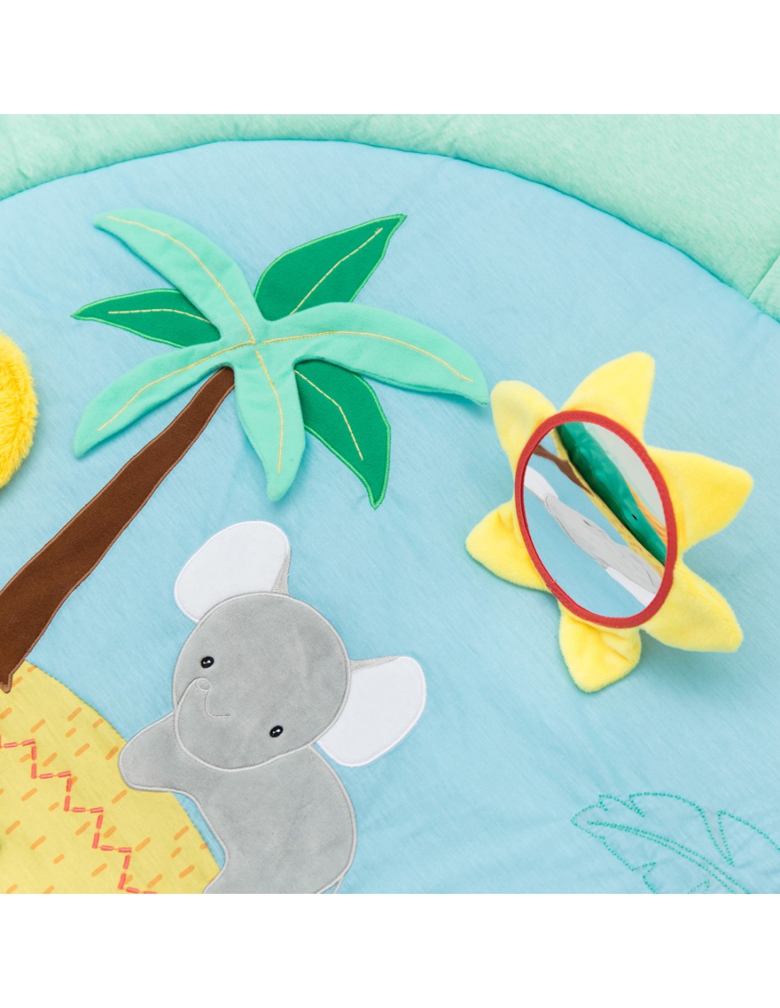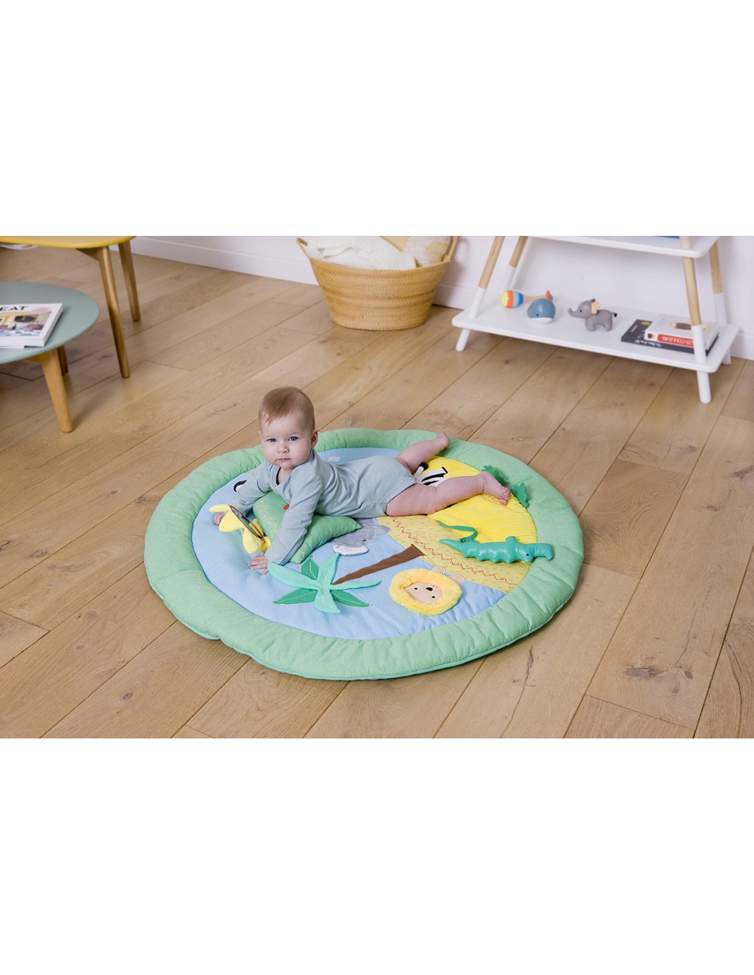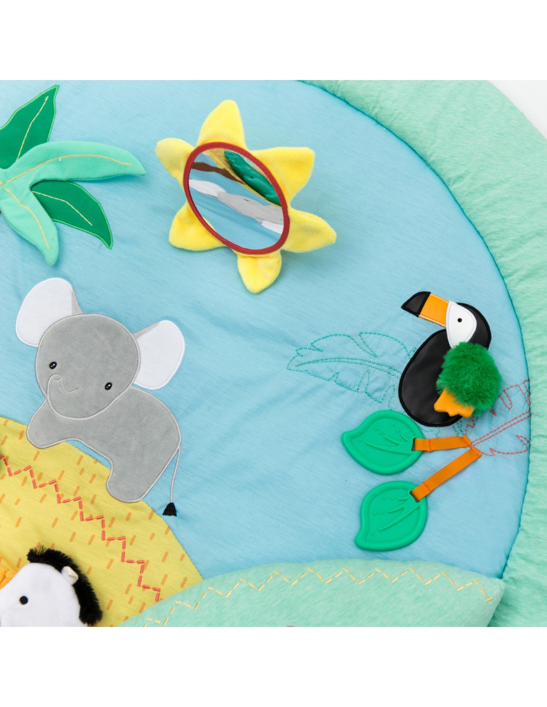 Mata edukacyjna dla dzieci z motywem dżungli pozwala stworzyć miejsce idealne do zabawy, które pobudza zmysły dziecka i pomaga mu odkrywać świat. Doskonale stymuluje wzrok i słuch, a dzięki wrażeniom dotykowym wspomaga sensoryczny rozwój malucha i rozwija jego koordynację wzrokowo - ruchową.