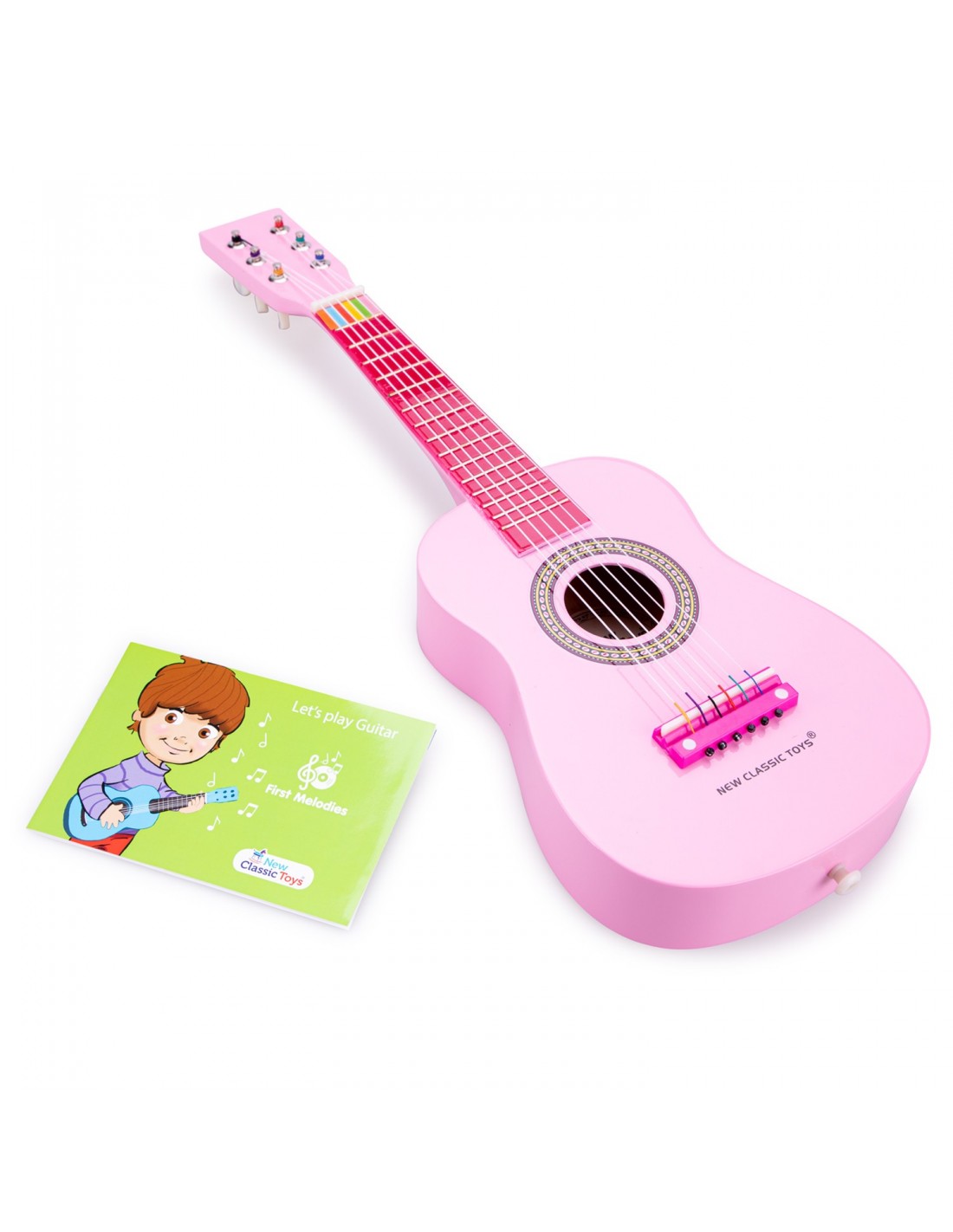 Ta drewniana gitara zabawkowa to zabawny i edukacyjny instrument muzyczny, idealny do rozwijania koordynacji ręka-oko oraz muzycznej kreatywności. W zestawie zapasowa struna i pasek na ramię. Ta drewniana gitara jest częścią linii produktów New Classic Toys „First Melodies”. Co jest piękniejsze niż tworzenie muzyki? Gitary, fortepiany, dzwonki i inne instrumenty zabawkowe zapewniające dużo zabawy i rozwój muzyczny.
