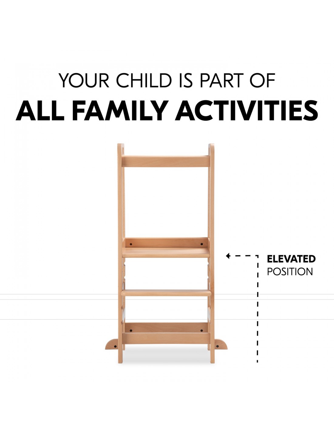 Dzięki podwyższonej pozycji dziecko może wykonywać różne czynności na wysokości wzroku wraz z rodziną. Zgodnie z zasadą Montessori "Pomóż mi zrobić to samemu", dziecko przejmuje zadania od najmłodszych lat poprzez zabawę, np. gotowanie lub pieczenie, a tym samym wzmacnia swoją niezależność, pewność siebie, rozwój językowy i społeczny.