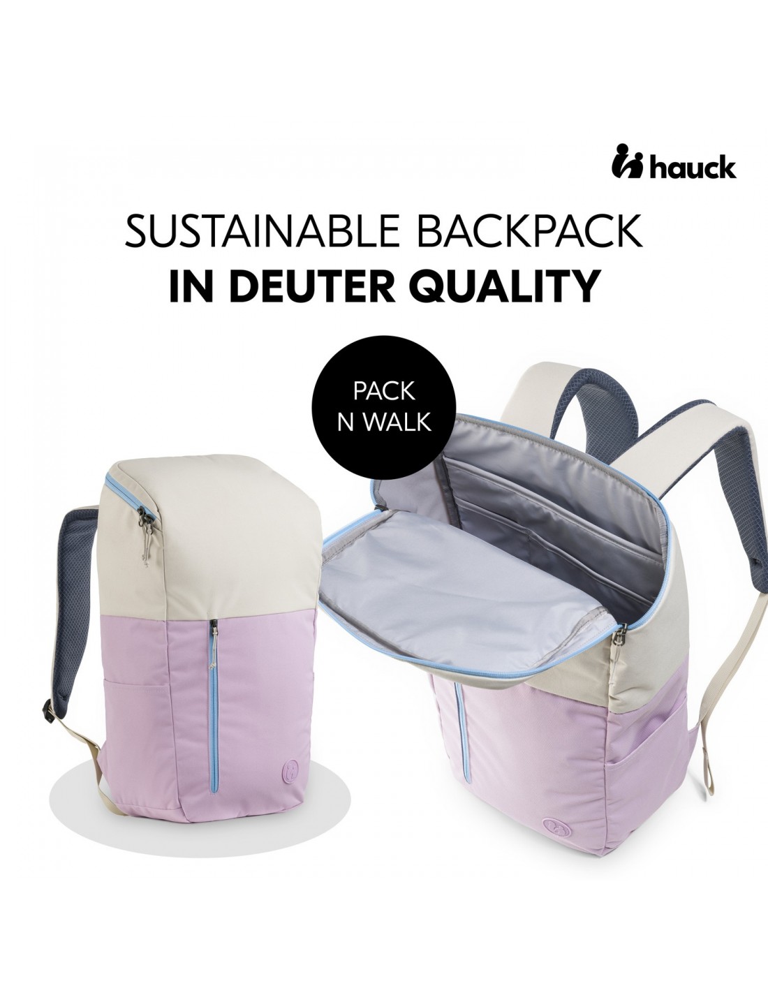 Materiał plecaka wykonany jest w 100% z poliestru i został wykonany z przetworzonych plastikowych butelek. W ten sposób Hauck Pack N Walk składa się z około 35 przetworzonych 0,5-litrowych butelek PET. W ten sposób do produkcji zużywa się mniej wody, ropy naftowej i 50% mniej energii i CO2. Każdy plecak to zrównoważony wkład w ochronę przyrody.