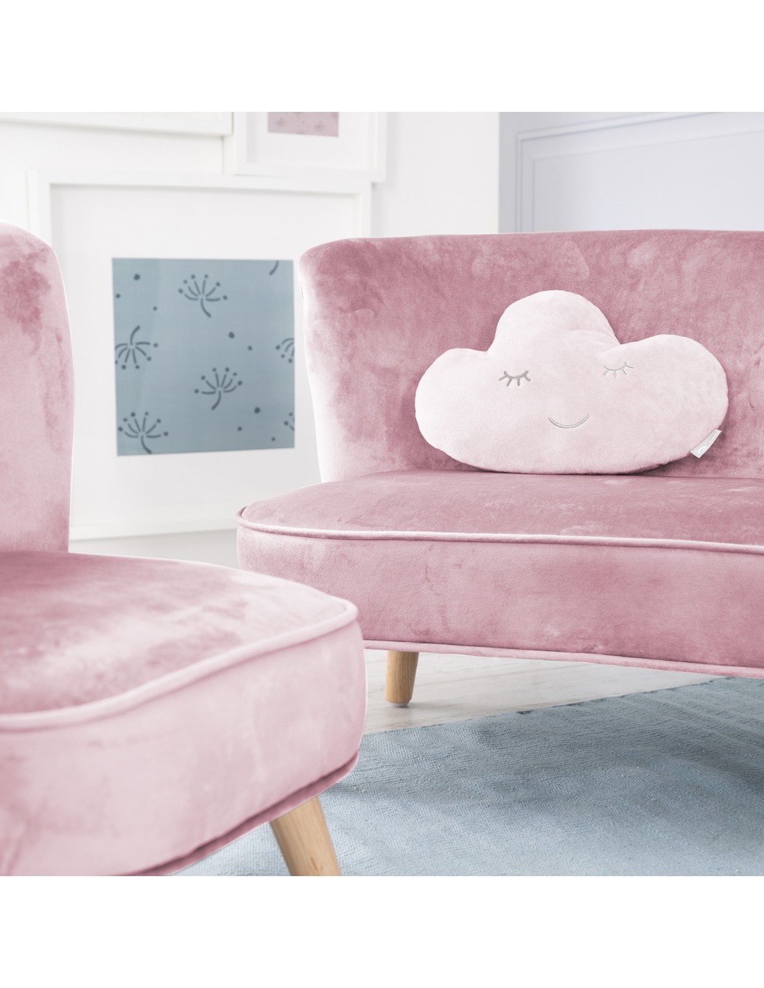 Przytulanki z serii „roba Style” są dostępne w postaci chmurek, gwiazdek lub księżyców w trzech kolorach: różowym/fioletowym, jasnoniebieskim/niebieskim lub srebrnoszarym, które pasują do mebli dziecięcych roba „Lil Sofa”.