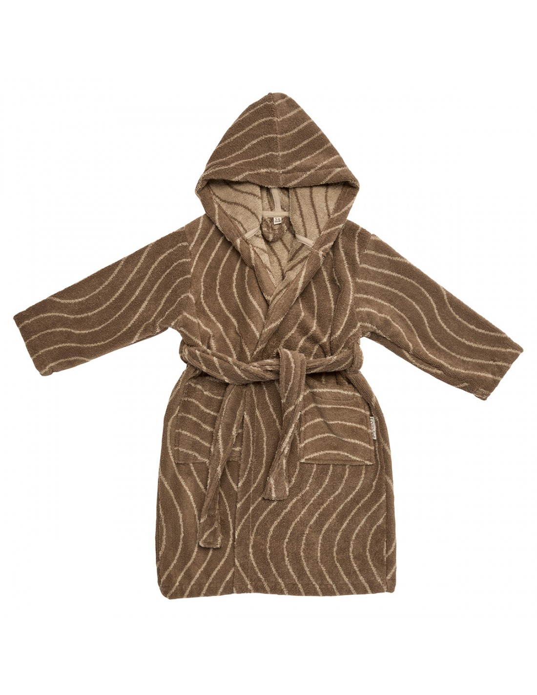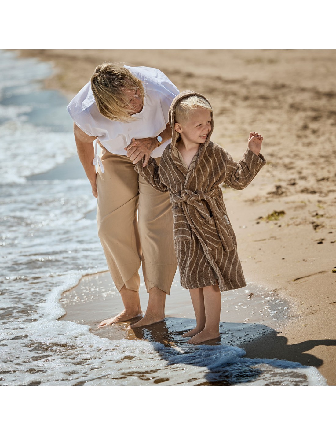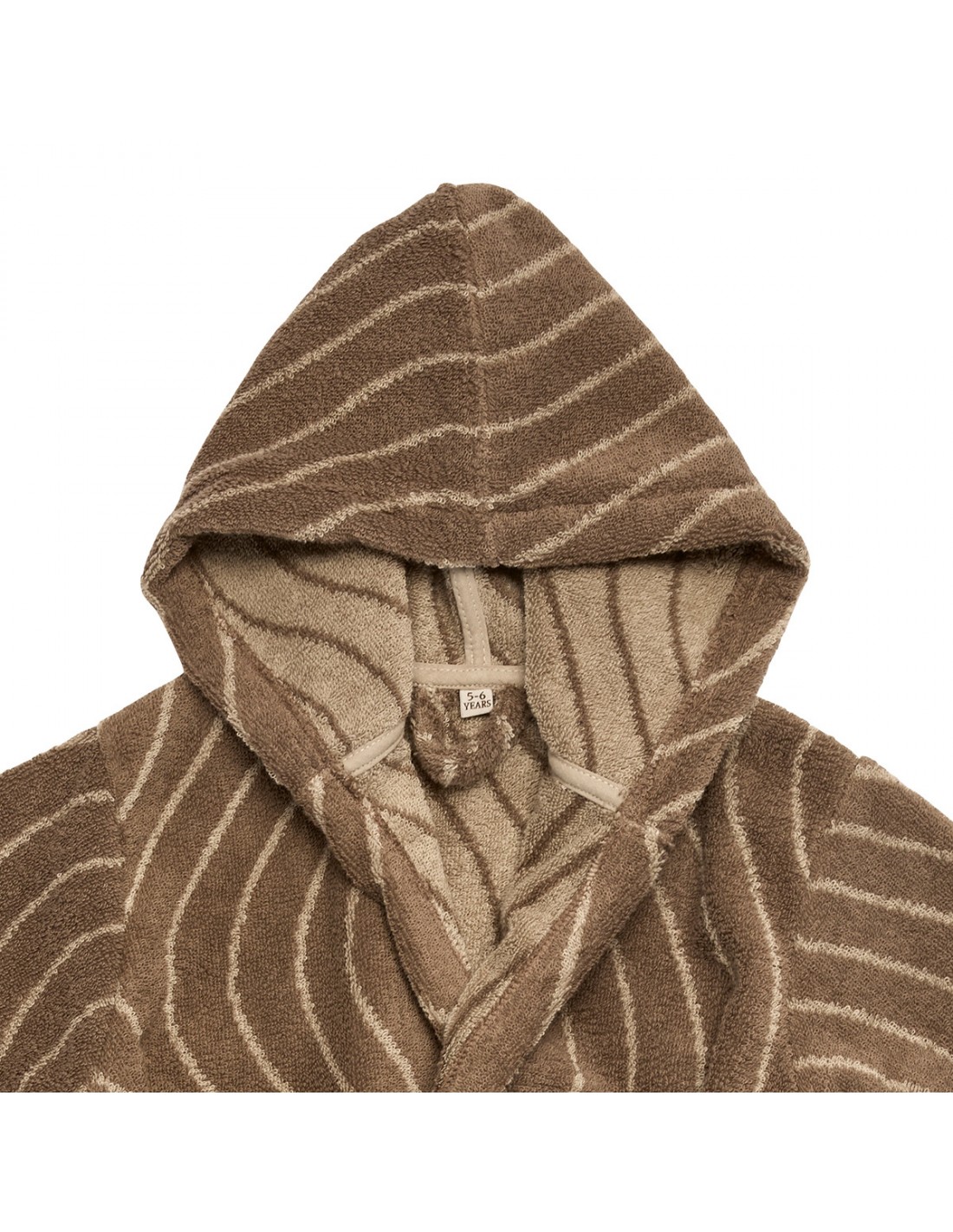 Szlafrok ma unikalny, zabawny i ręcznie rysowany wzór. Uniwersum Woodland zostało zaprojektowane we współpracy z projektantką tekstyliów Sine Mendgaard-Johannsen, która ręcznie rysuje swoje nadruki za pomocą wyjątkowej i zabawnej linii. Każdy pasek opowiada swoją własną historię. Paski prowadzą do przygód; ukryte ścieżki, zaczarowane zwierzęta lub tajemnicze jaskinie, w których czekają na odkrycie przygody.