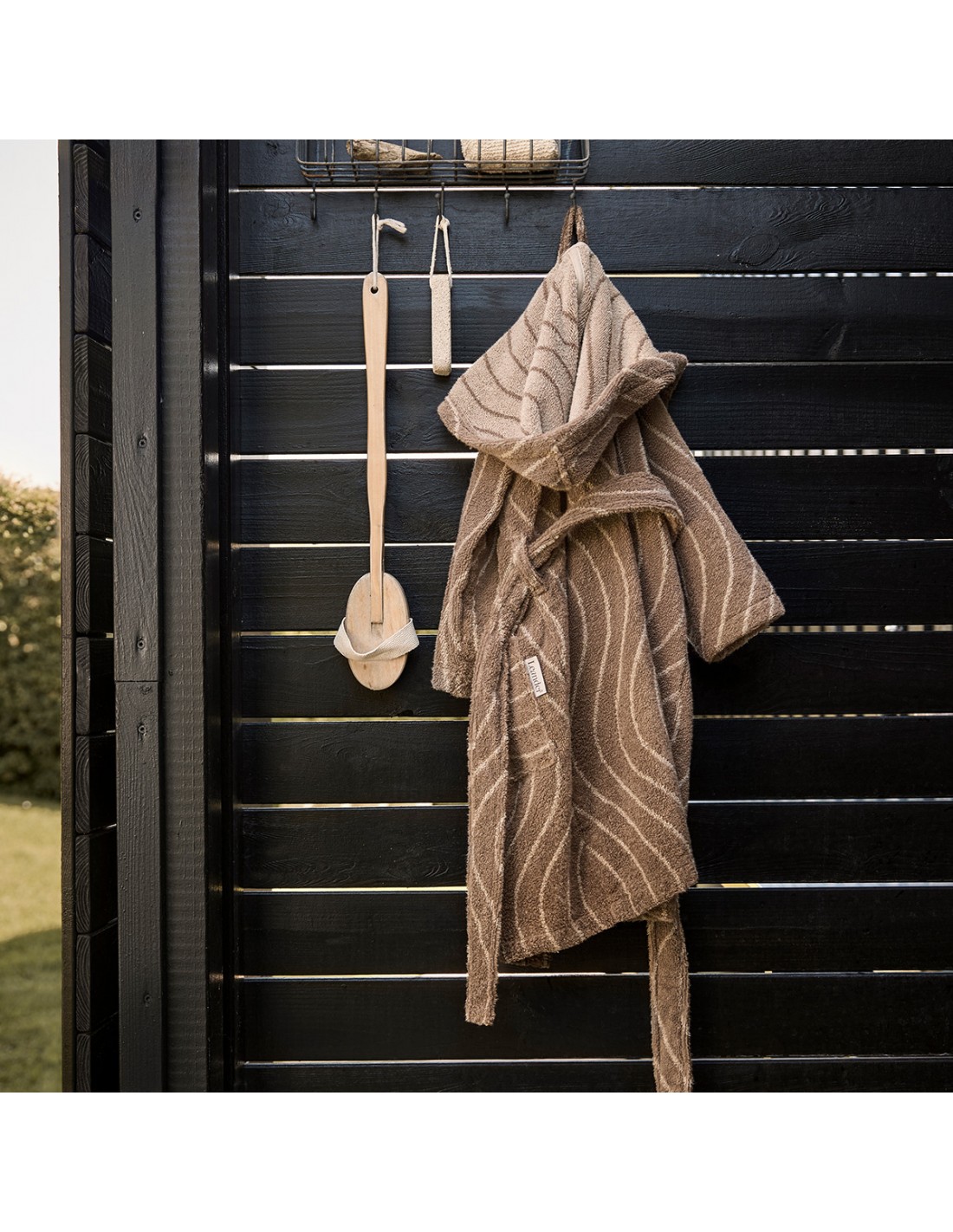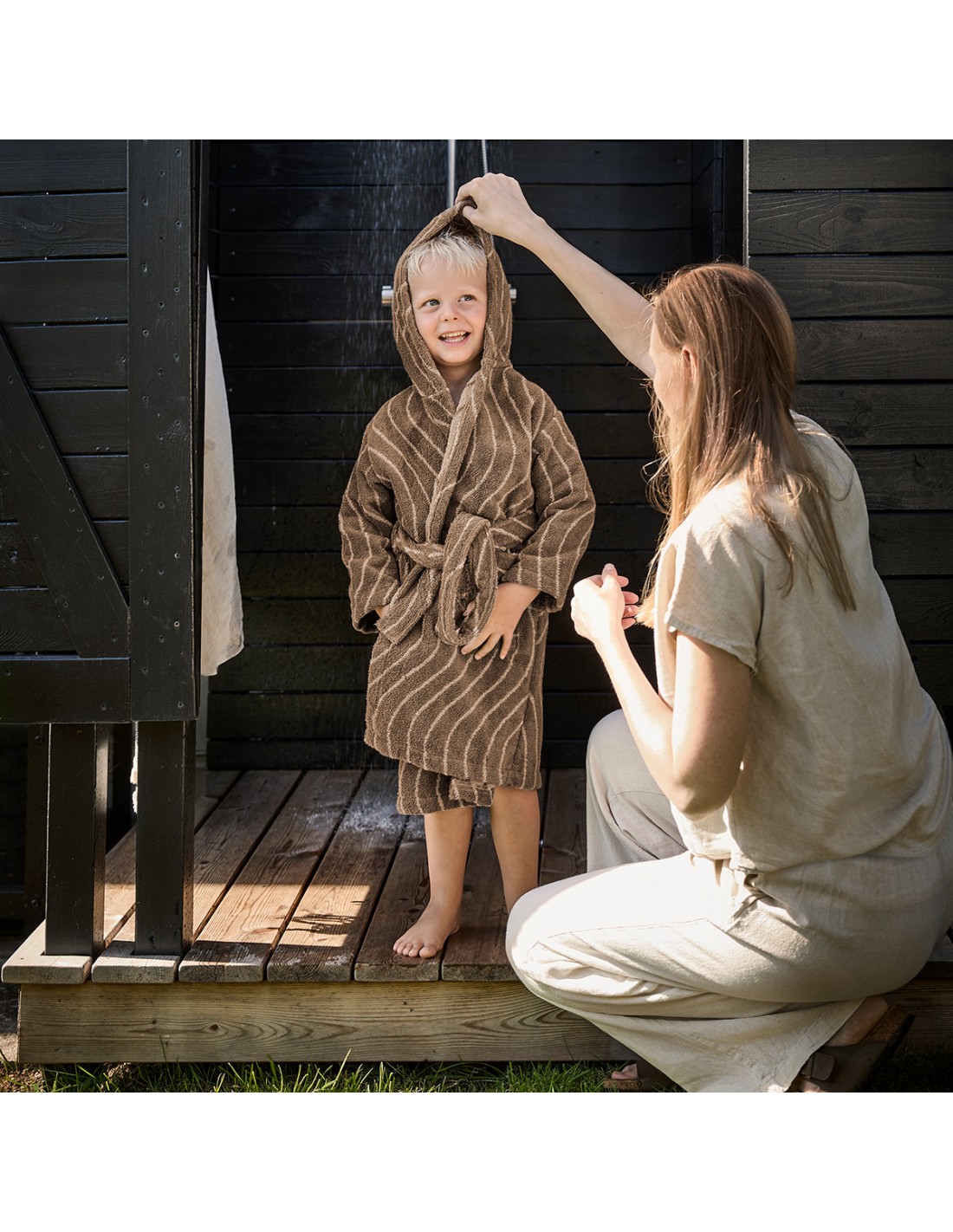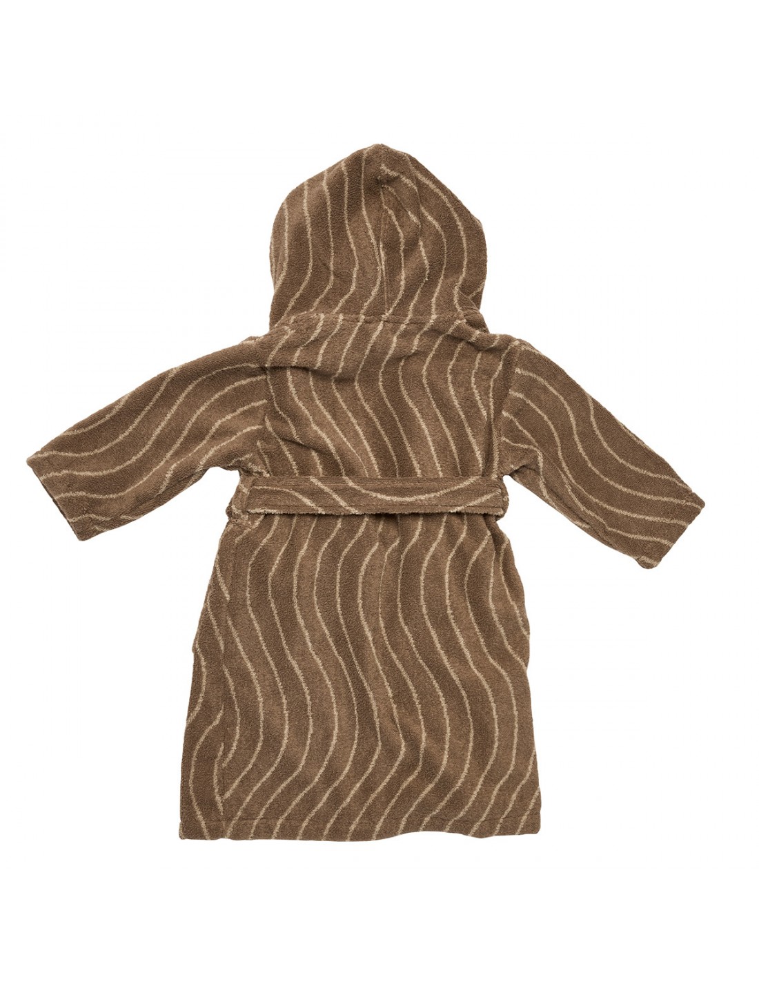 Szlafrok ma unikalny, zabawny i ręcznie rysowany wzór. Uniwersum Woodland zostało zaprojektowane we współpracy z projektantką tekstyliów Sine Mendgaard-Johannsen, która ręcznie rysuje swoje nadruki za pomocą wyjątkowej i zabawnej linii. Każdy pasek opowiada swoją własną historię. Paski prowadzą do przygód; ukryte ścieżki, zaczarowane zwierzęta lub tajemnicze jaskinie, w których czekają na odkrycie przygody.
