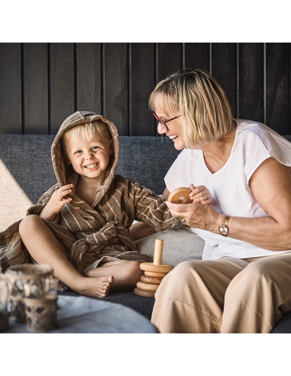 Szlafrok LEANDER zmienia poranne i wieczorne czynności w przytulne i praktyczne chwile zarówno dla dzieci, jak i rodziców, jednocześnie otulając dziecko ciepłem i wygodą.