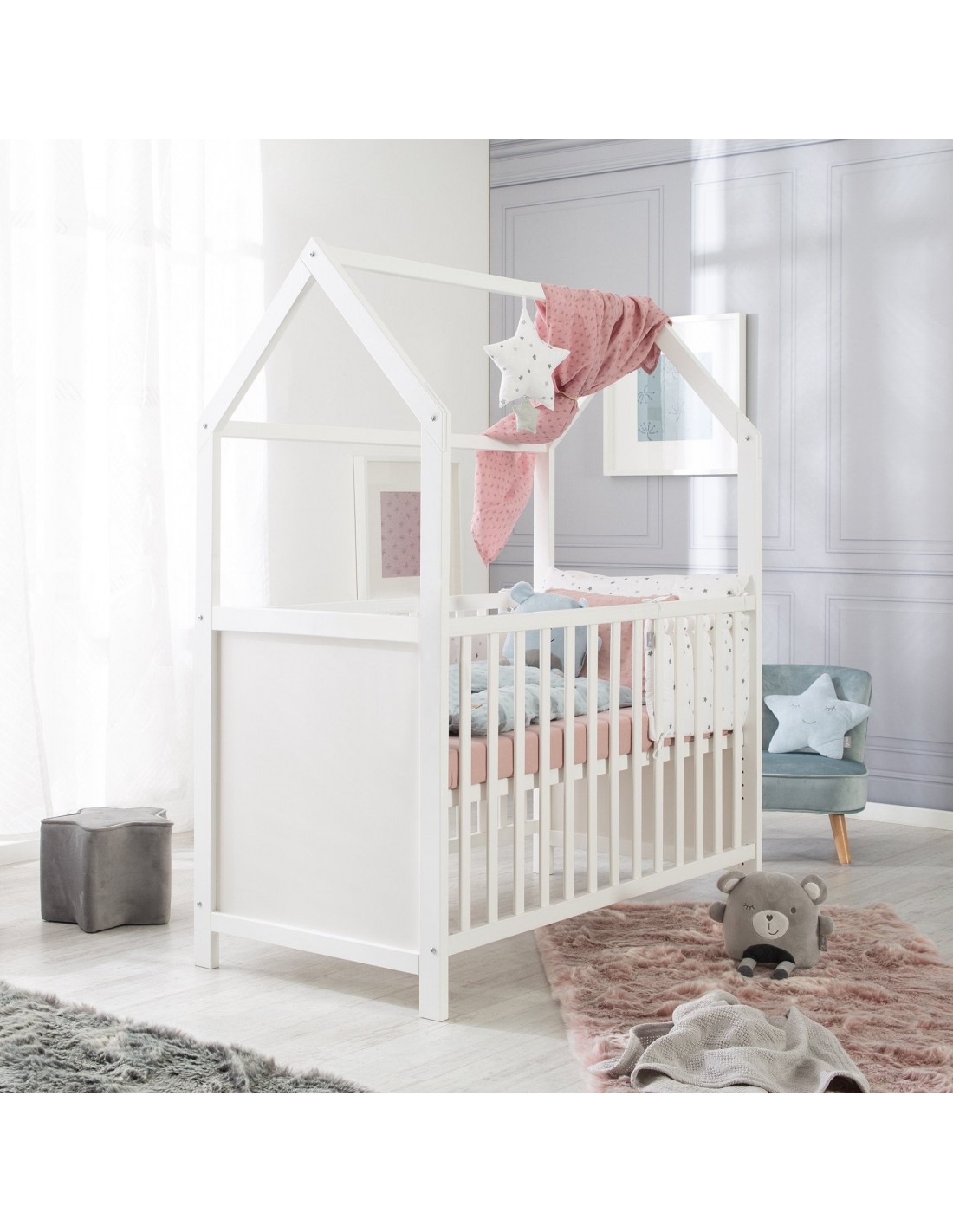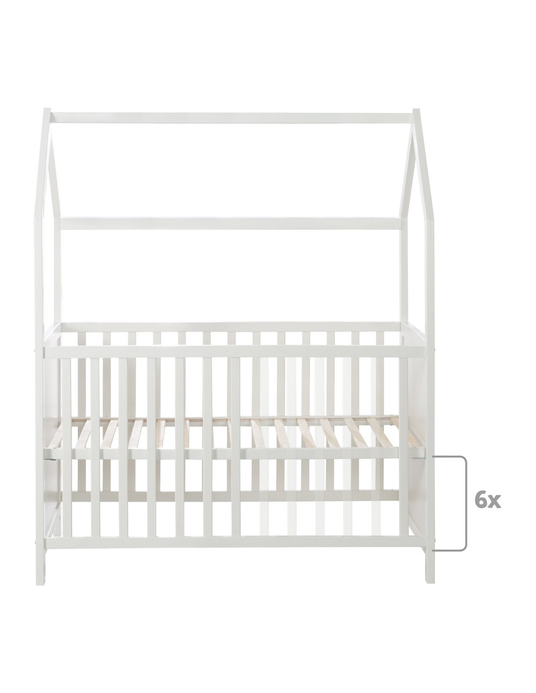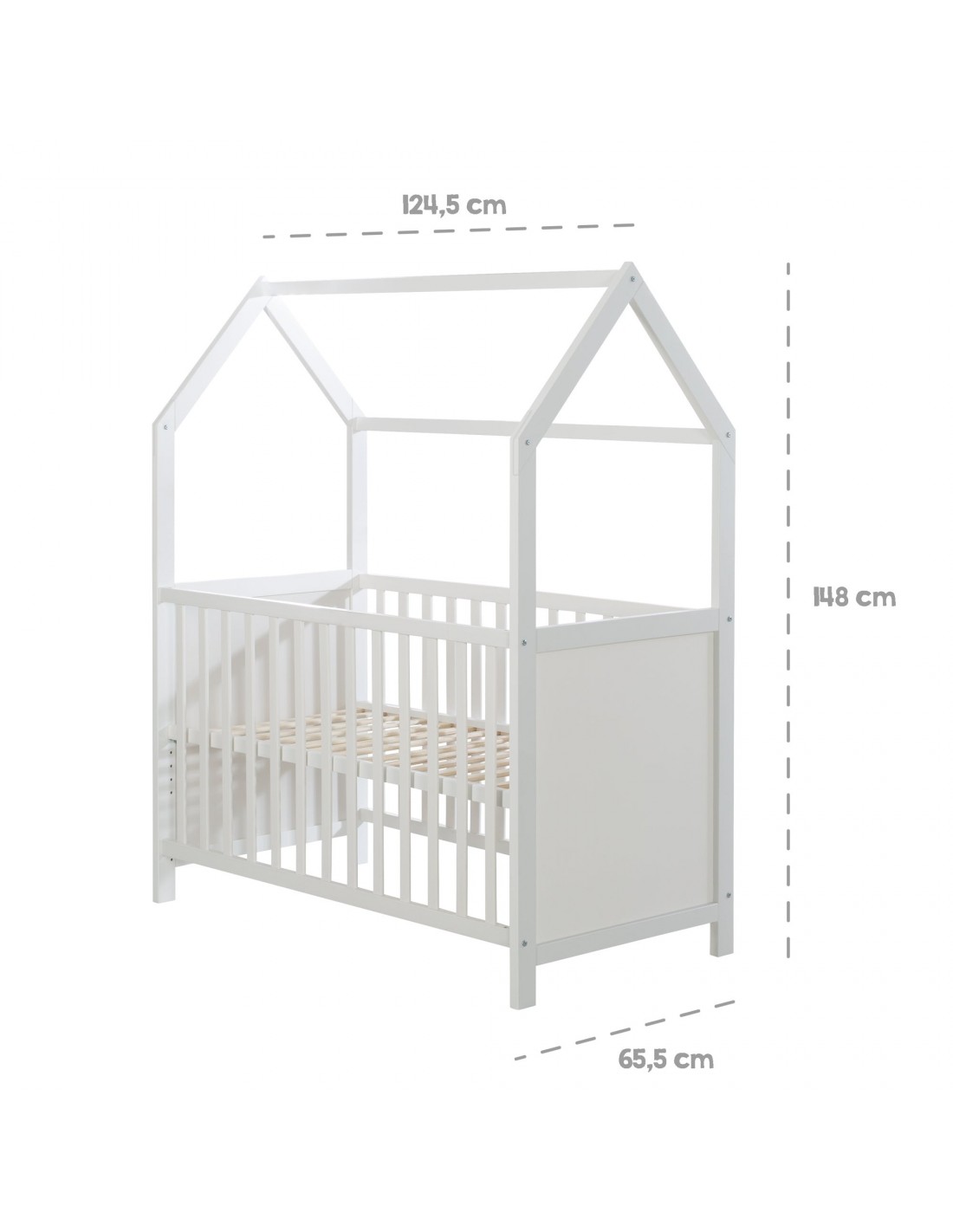 Łóżko roba house to regulowane na wysokość i rozkładane łóżko boczne i łóżko dziecięce ze stelażem listwowym o powierzchni leżącej 60 x 120 cm. Białe łóżeczko dziecięce i łóżko boczne, które rośnie wraz z dzieckiem, może być używane jako łóżko obok łóżka rodziców dzięki 5 wyjmowanym prętom w elemencie kratowym lub później, aby maluchy mogły łatwo wchodzić i wychodzić. Łóżeczko domowe może być używane od urodzenia do ok. 8 lat. Łóżko domowe można później przekształcić w przytulną sofę w kilku prostych krokach, dzięki czemu może być używane przez długi czas. Łóżeczko dziecięce z certyfikatem FSC jest wykonane z surowców pochodzących ze zrównoważonej i odpowiedzialnej gospodarki leśnej. Łatwe w montażu łóżko domowe zostało opracowane w Niemczech zgodnie z najnowszymi normami bezpieczeństwa EN 716 - 1: 2017 + AC: 2019. Wszystkie materiały są przetestowane i wolne od szkodliwych substancji. Rozszerzone o tekstylia z naszych kolekcji roba, możesz spać i śnić cudownie w pięknym łóżku bocznym roba.