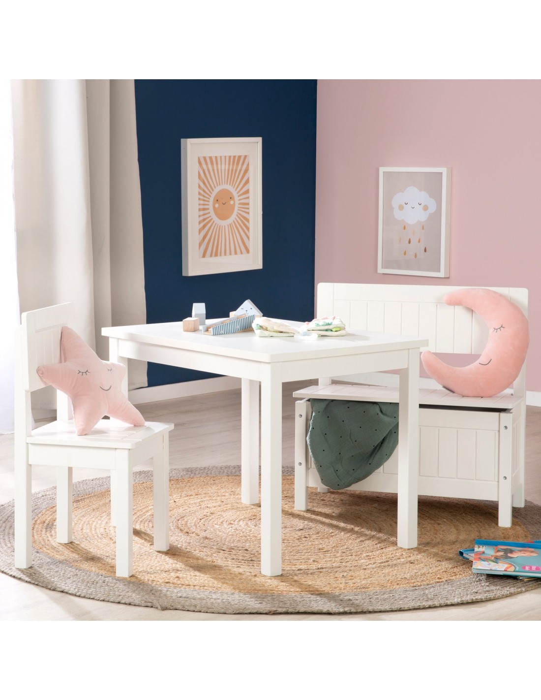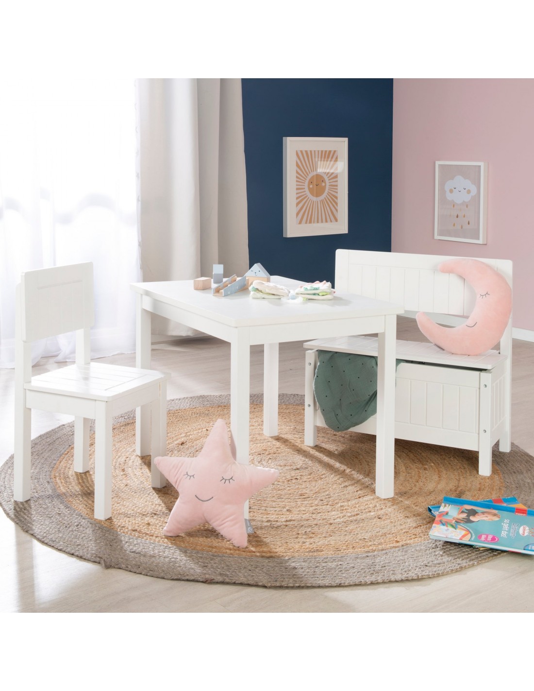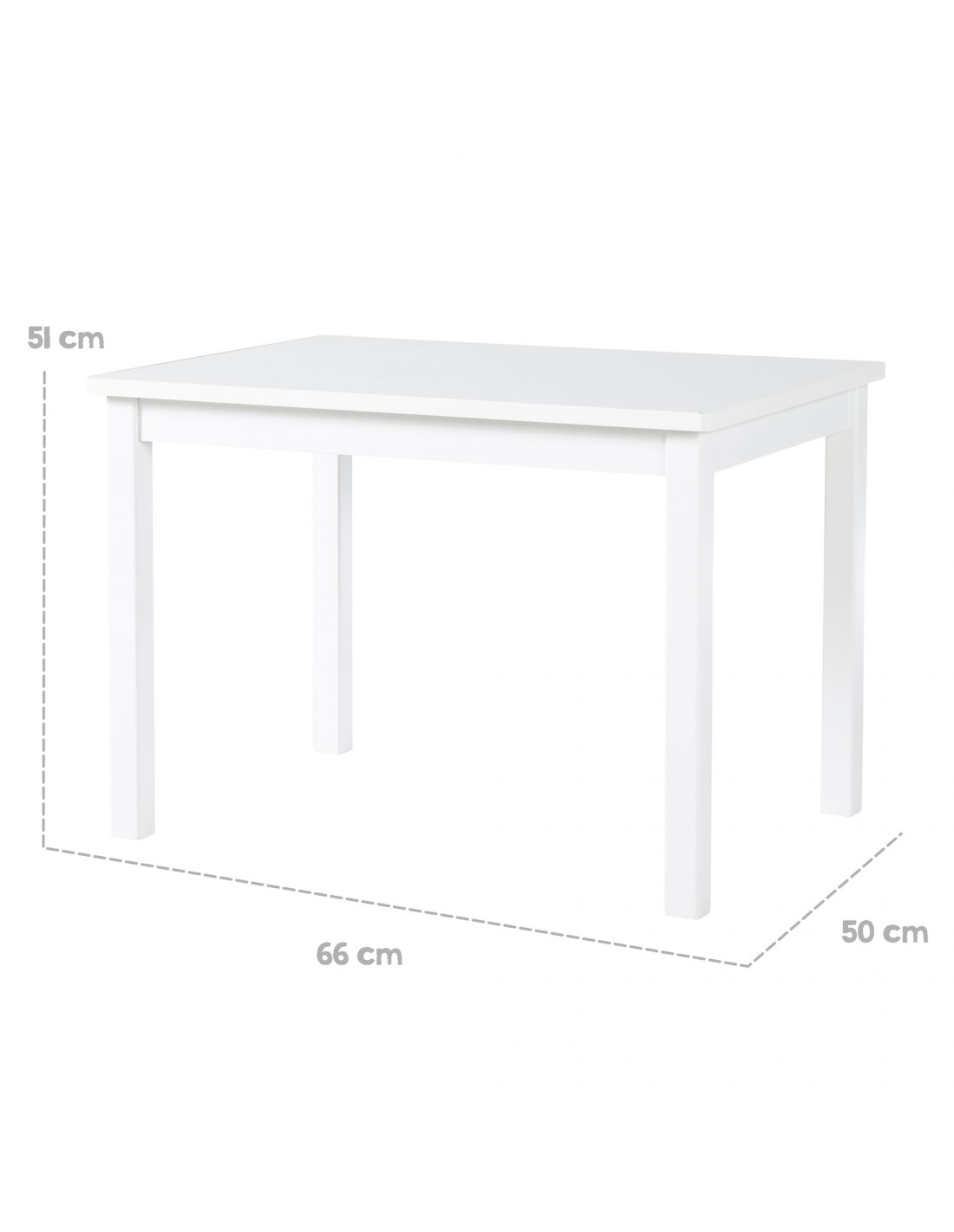 Solidny stolik dziecięcy wykonany z litego drewna i płyty MDF to naprawdę wszechstronny produkt. Ma wysokość 50 cm i jest odpowiedni dla dzieci w wieku od 2 do 10 lat. Duży blat stołu służy Twoim dzieciom jako miejsce do jedzenia, wykonywania robótek ręcznych, malowania i pisania. Dzięki prostemu, nowoczesnemu wzornictwu w kolorze białym pasuje do każdego pokoju dziecięcego. Stół dziecięcy można również wspaniale uzupełnić pasującym krzesłem i pasującą, przestronną ławką dla dzieci, tworząc grupę siedzeń.
