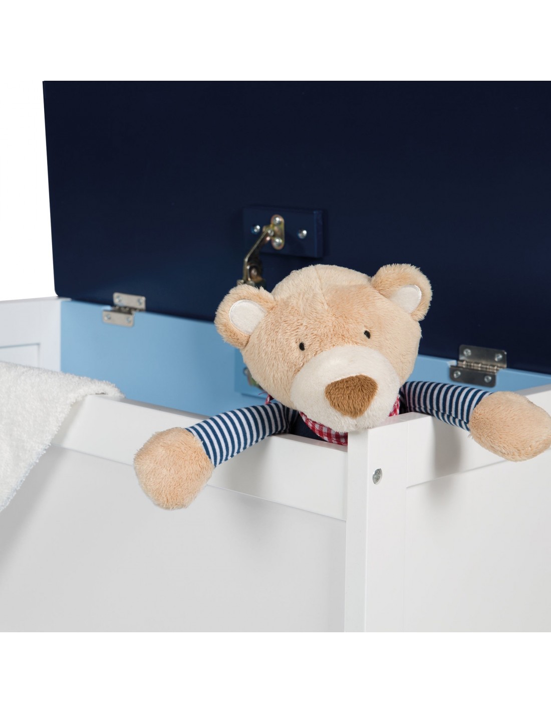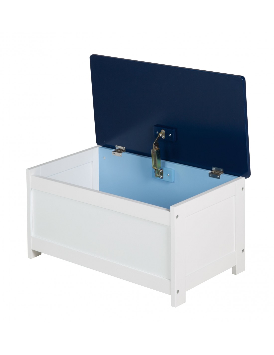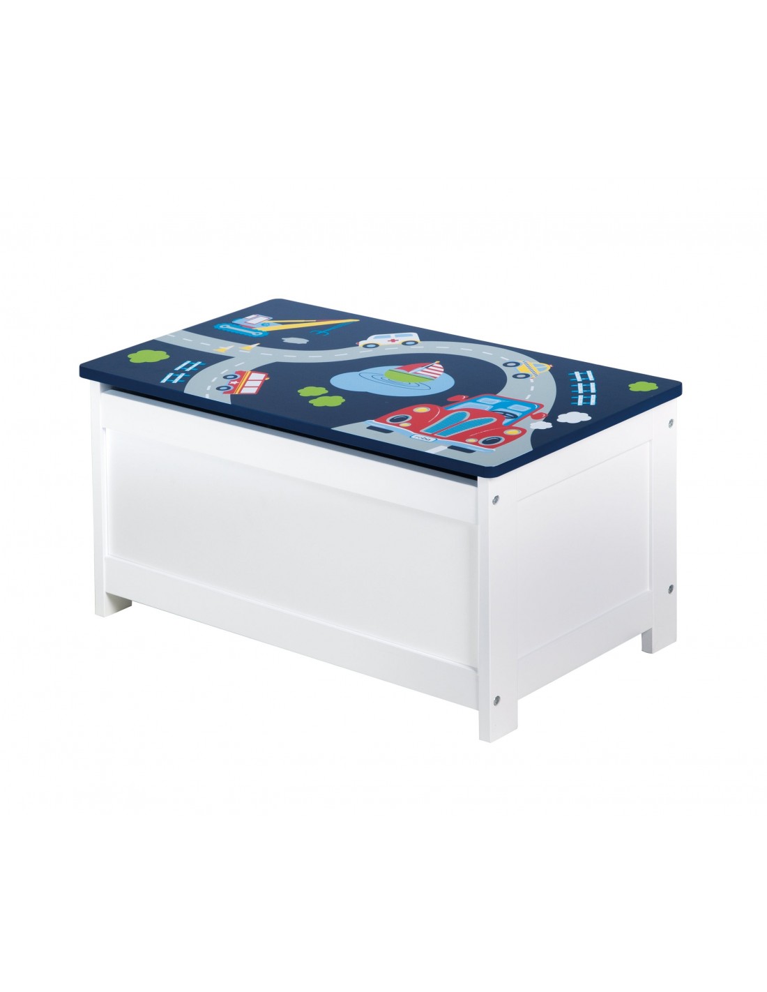Niebieska skrzynia na zabawki wykonana z lakierowanej i drukowanej płyty MDF jest idealnie dopasowana do potrzeb siedzenia dzieci w wieku od 2 do 10 lat. Ławka skrzyniowa może być używana zarówno jako ławka jak i schowek. Może być wspaniale łączona z innymi meblami dziecięcymi z serii. Twoje dziecko może wygodnie usiąść na solidnym meblu dziecięcym, ponieważ wysokość siedziska wynosi 30 cm. Składane siedzisko skrzyniowe z bezpiecznym hamulcem pokrywy zapewnia miejsce do przechowywania wszelkiego rodzaju zabawek. Ławkę skrzyniową dla dzieci można również wspaniale przekształcić w grupę siedzeń z pasującymi grupami siedzeń dla dzieci (nr art. 450018D331), dzięki czemu pokój dziecięcy stanie się miejscem spotkań do zabawy. Chłopcy pokochają skrzynię z nadrukiem pojazdów!