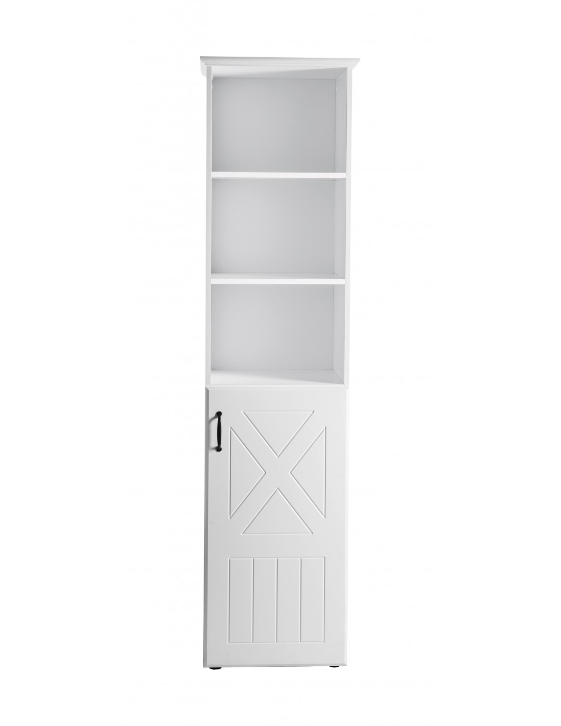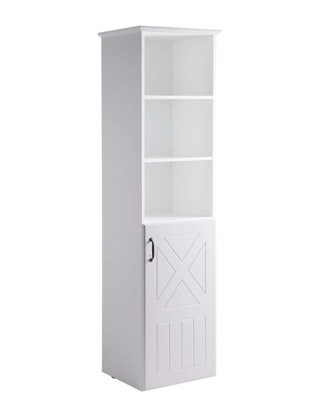 Regał „Constantin” błyszczy dekorem „Biały” i frezowanymi frontami w stylu wiejskiego domu w kolorze „Canadian White”. Ponadczasowy i nowoczesny mebel z 3 regulowanymi półkami oferuje mnóstwo miejsca na zabawki, książki i inne ulubione drobiazgi. Jedna z półek dzieli schowek ukryty za drzwiami, zapewniając w ten sposób jeszcze więcej miejsca do przechowywania, a tym samym porządek w pokoju dziecięcym i dziecięcym. (wys. x szer. x gł.): 190 x 49 x 41,5 cm.