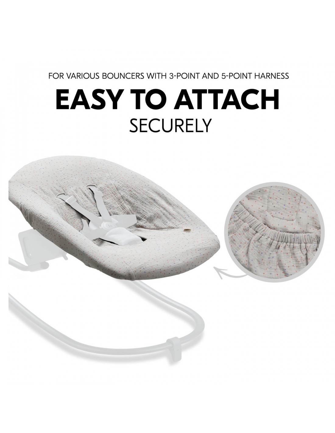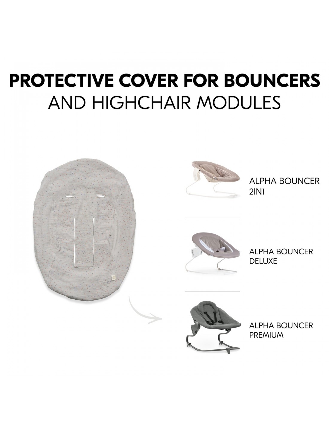 Pokrowiec jest idealny do leżaczków, takich jak hauck Alpha Bouncer 2w1, Alpha Bouncer Deluxe i Alpha Bouncer Premium, i chroni oryginalny pokrowiec leżaczka. Dzięki miękkiemu pokrowcowi wykonanemu z oddychającej bawełny muślinowej dziecko może wygodnie leżeć w leżaczku o każdej porze roku.