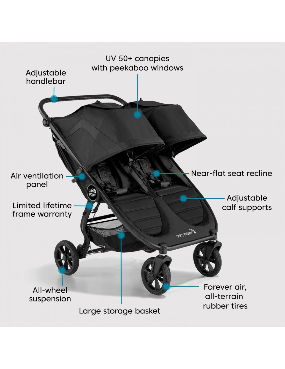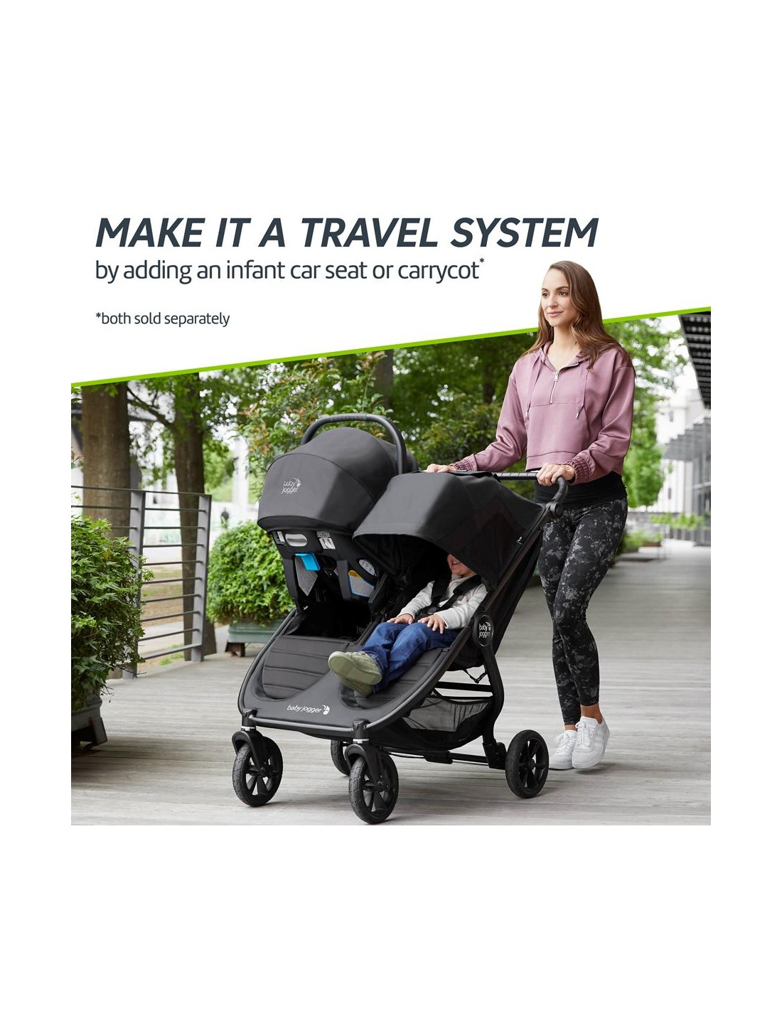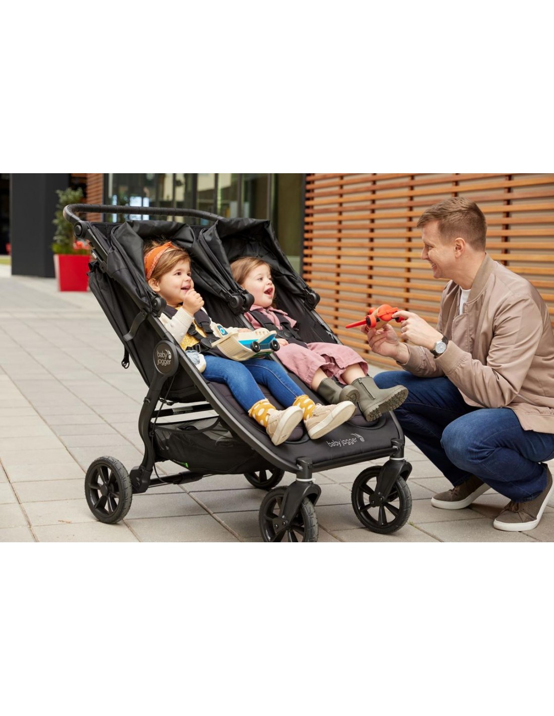 Podwójny wózek City Mini GT 2 w nowej odsłonie, z gumowymi, terenowymi oponami Forever Air i zawieszeniem na wszystkie koła, zapewni bezkompromisową i płynną jazdę rodzeństwu po każdym terenie. Praktyczna rączka o regulowanej wysokości wraz z hamulcem ręcznym ułatwia manewrowanie wózkiem,, czyniąc go zwrotnym i zwinnym w każdych okolicznościach. Dzięki nowej konstrukcji wózka i opcji montażu 2 gondol lub/i fotelika z gr. 0 zapewnione jest przewożenie dzieci od urodzenia do ok. 4 lat po 22 kg / siedzisko , a liczne akcesoria sprzyjają personalizacji wózka.