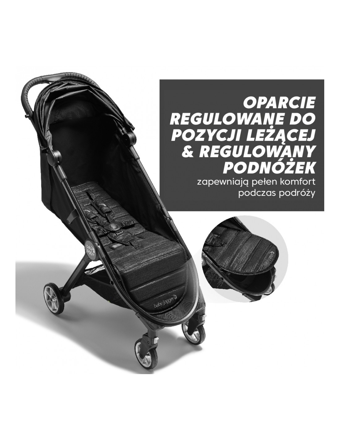 Regulowany podnóżek zapewnia wsparcie i swobodne ułozenie nóżek dziecka tak podczas spaceru jak i podczas drzemki.Torba