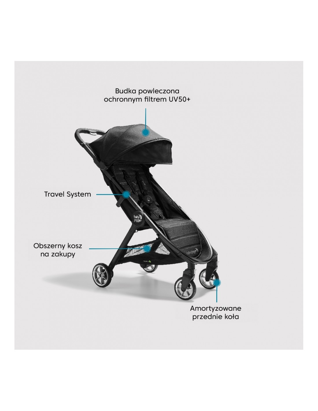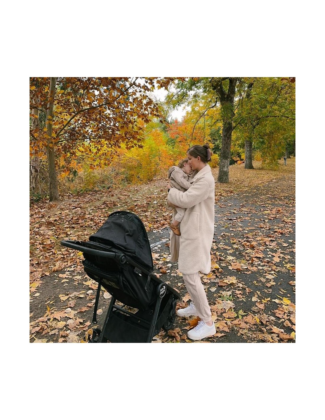 Obszerna budka wykonana z materiałów powleczonych ochronnym filtrem UV 50 wraz z wysuwanym daszkiem skutecznie chroni dziecko przed promieniami słonecznymi. Opcja okienka "peek-a-boo" pozwala "mieć oko" na dziecko podczas spaceru.Akcesoria: